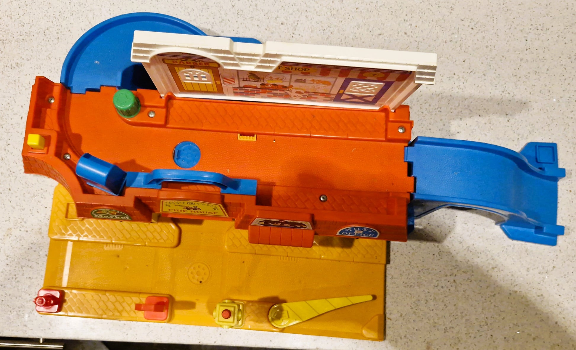 Very Good condition, all stickers in lovely condition, all elements work really well, drop through man hole cover, drive through bank, all doors, clips, accessories are in really good condition