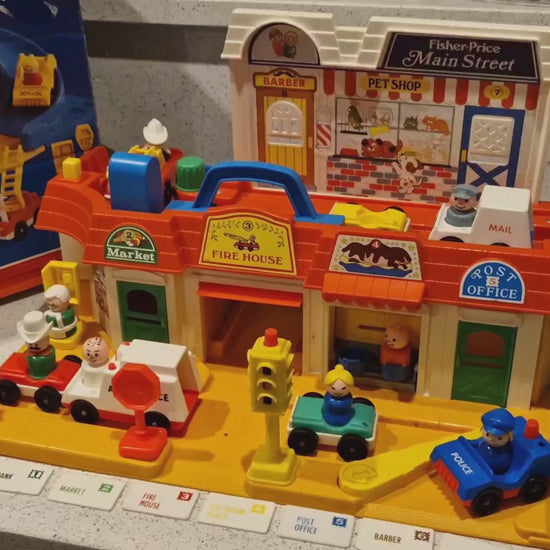 Vintage Fisher Price Main Street Set: Little People Town w/ Vehicles & Figures - BOXED