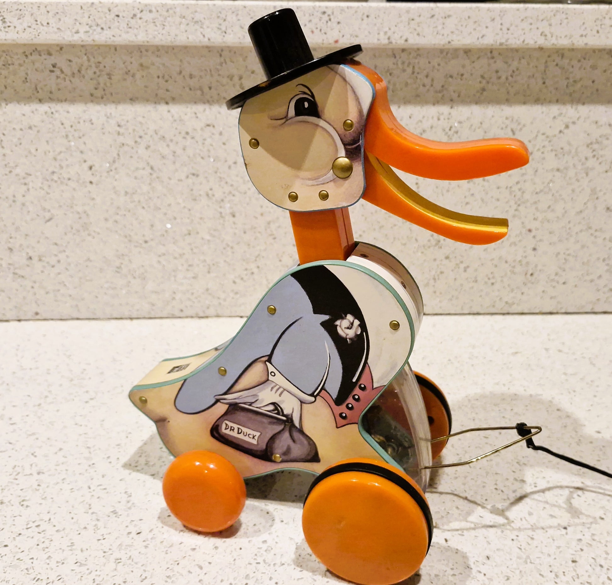 Vintage Fisher Price, Pull along Duck, Dr Doodle Duck, Quacking Duck Pull Toy