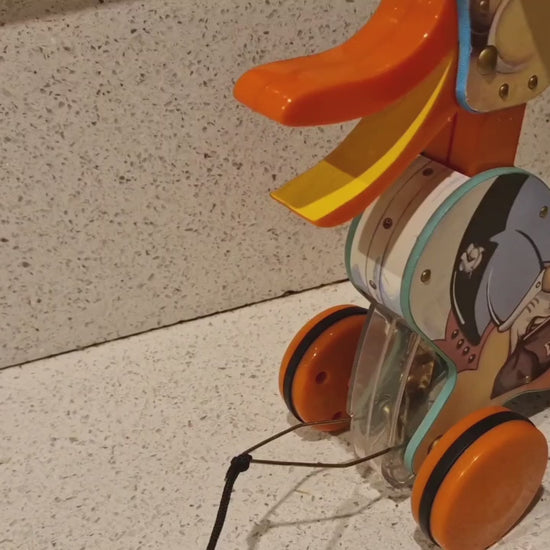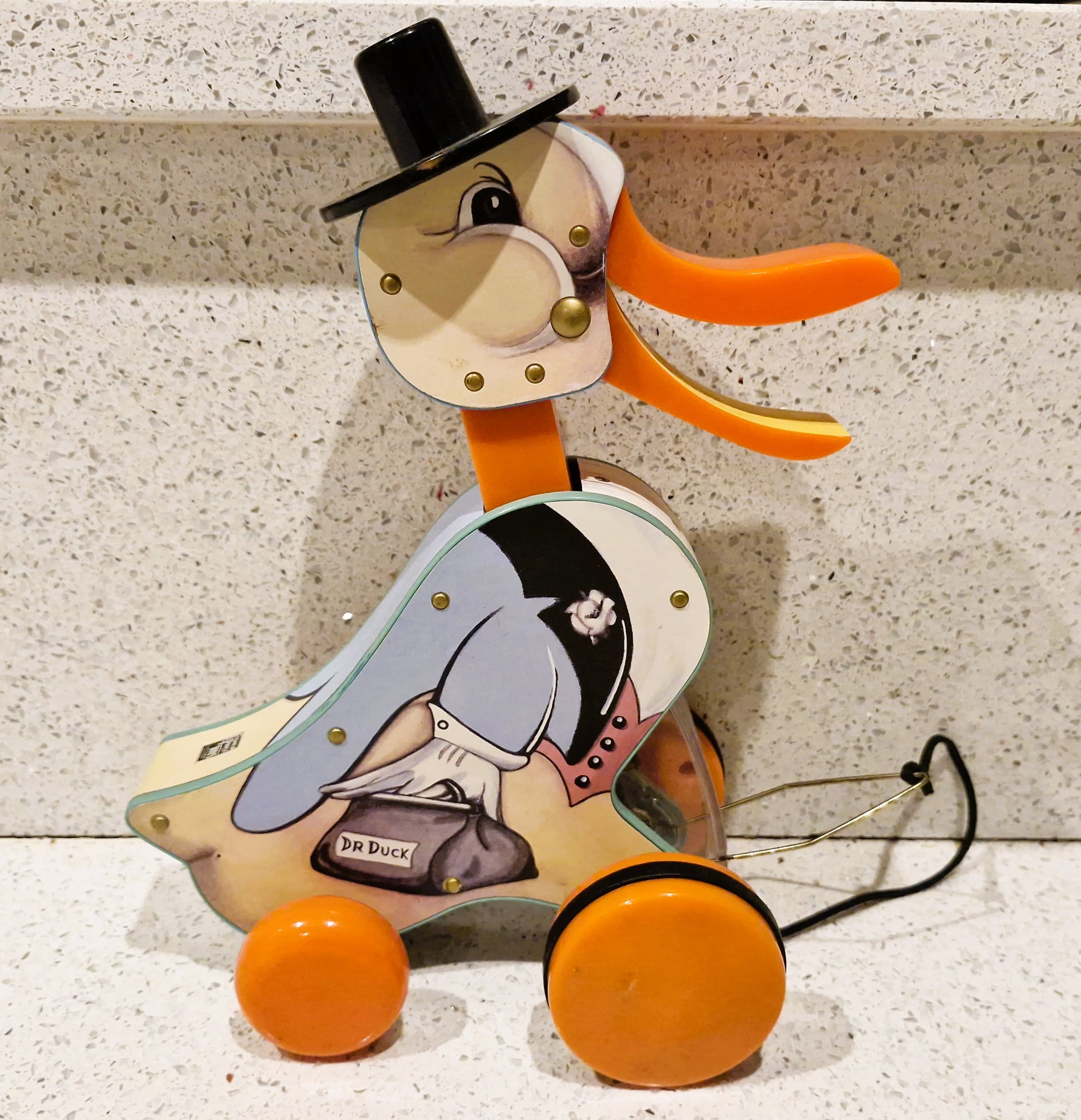 Wonderful condition 2004 Fisher Price Vintage Dr Doodle Duck, His head goes up and down and mouth opens and closes as goes along and he makes a clear quack quack sound, fully tested, lovely condition and works perfectly
