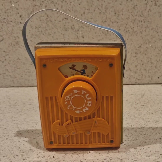 Original 70s Fisher price radio, plays really well, the tune is My name is micheal and a rare tune, it has some minor signs of wear to the stickers as pictures show, but has been tested and plays music really well and is clean and in very good condition for age