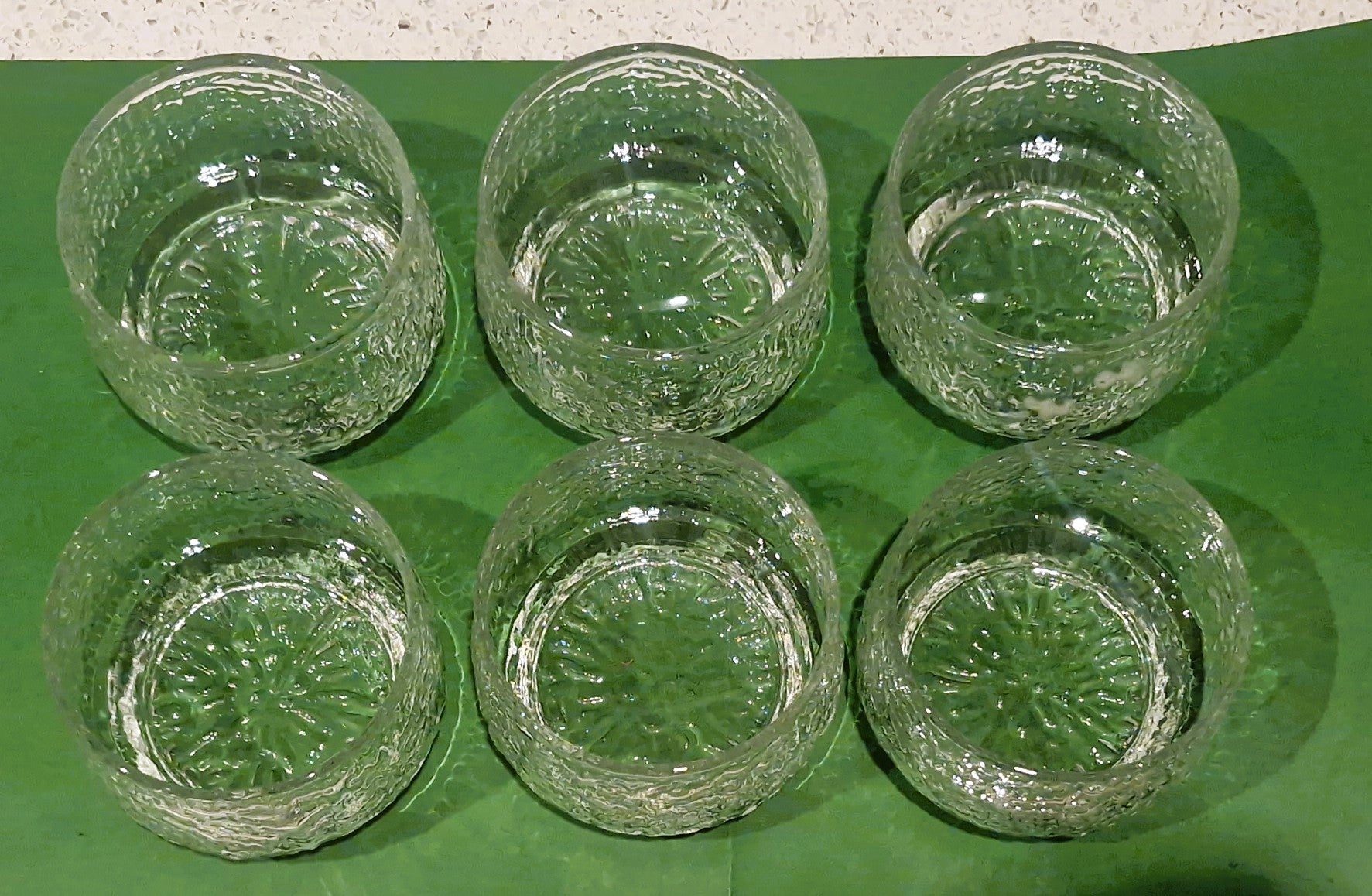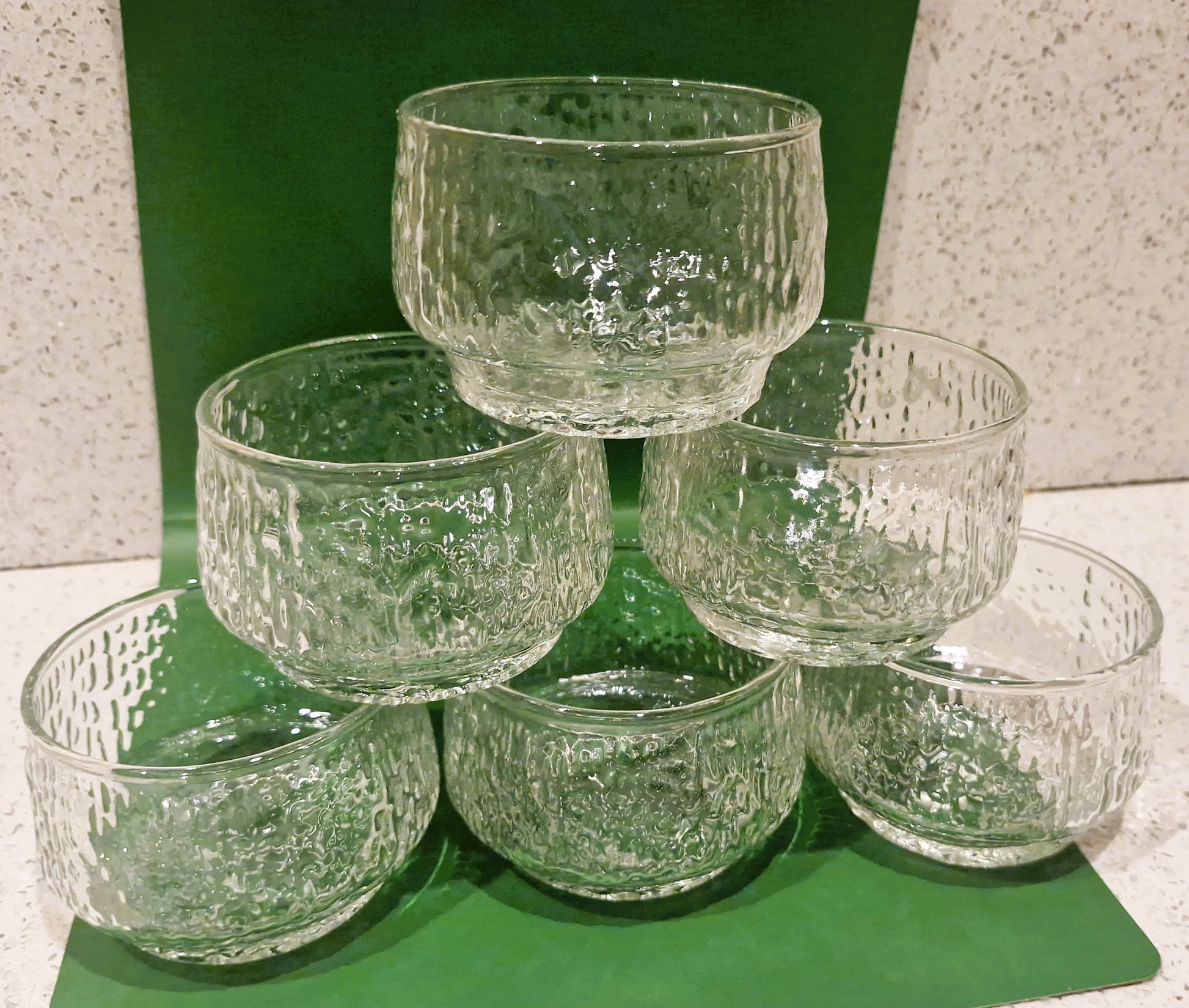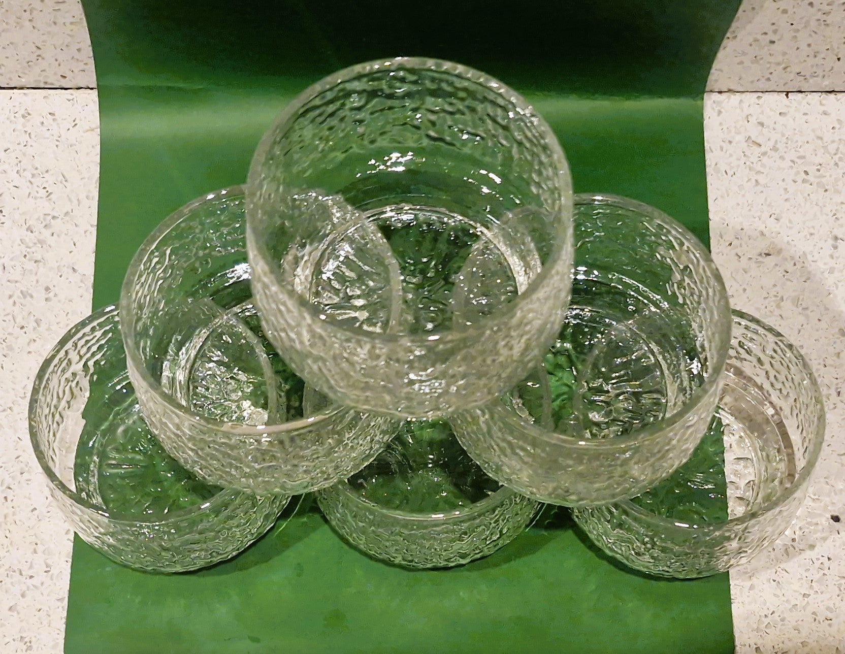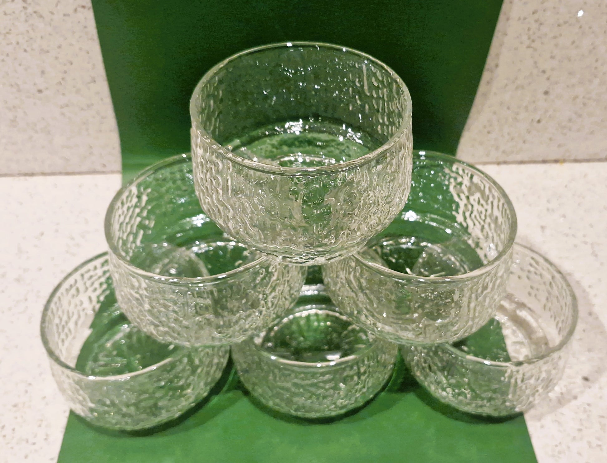 70s Glass Dessert Bowl Set, Textured Glass, Siesta Ravenhead Sundae Dishes, Iittala Style