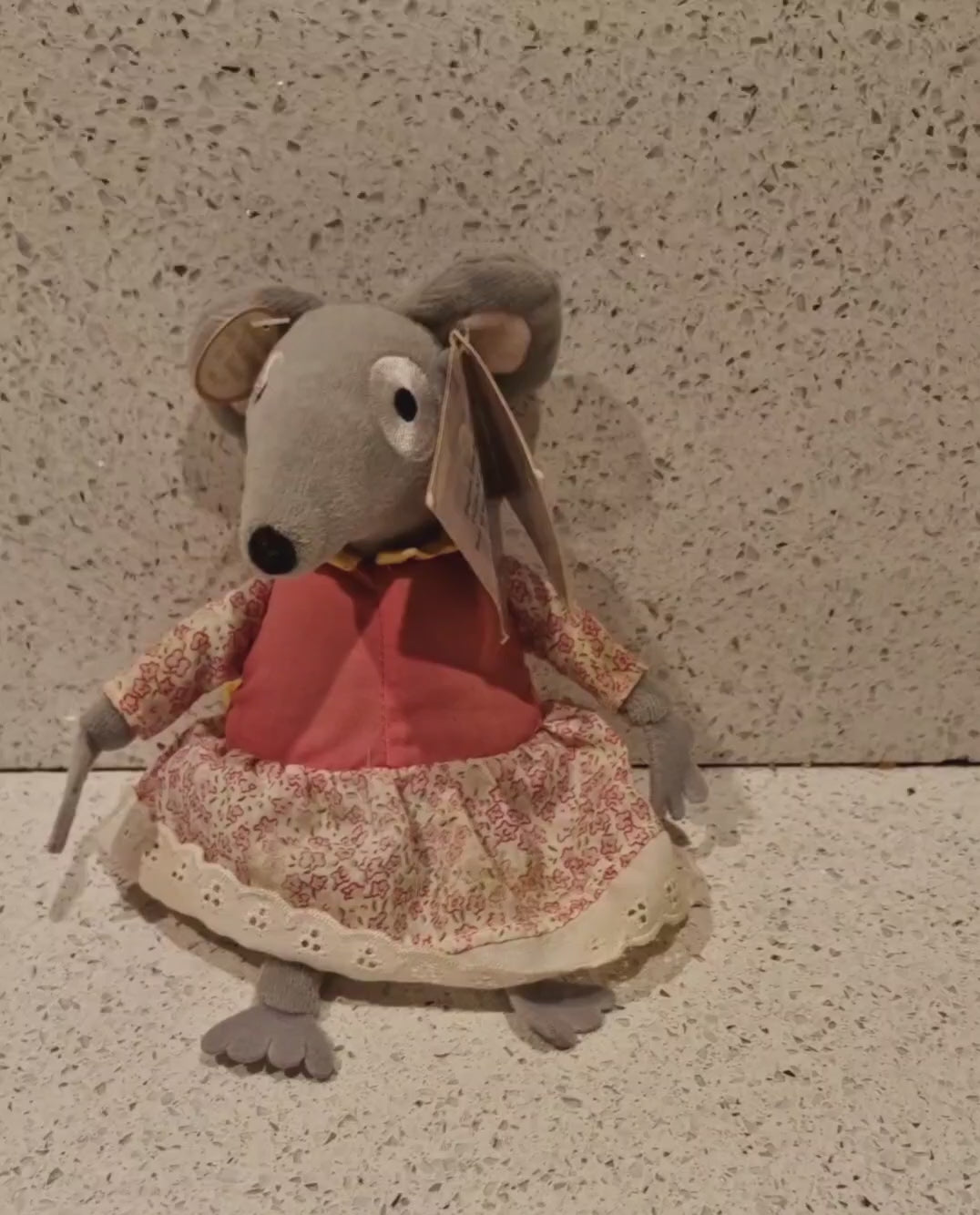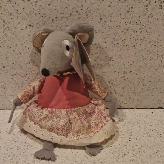 20 Years Old this wonderful and super cute Lizzie Mouse is in lovely condition for pre loved AND still works perfectly, singing 'We will mend it, we will fix it, we will make it like new, new, new' Really delightful in all ways and a very rare find in this condition and working this well