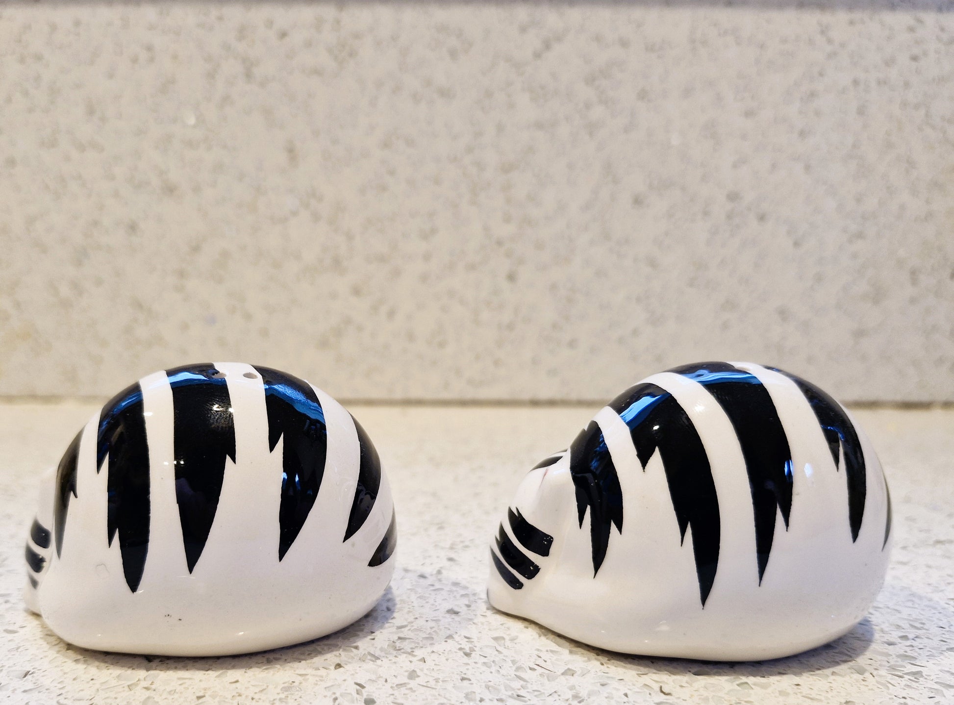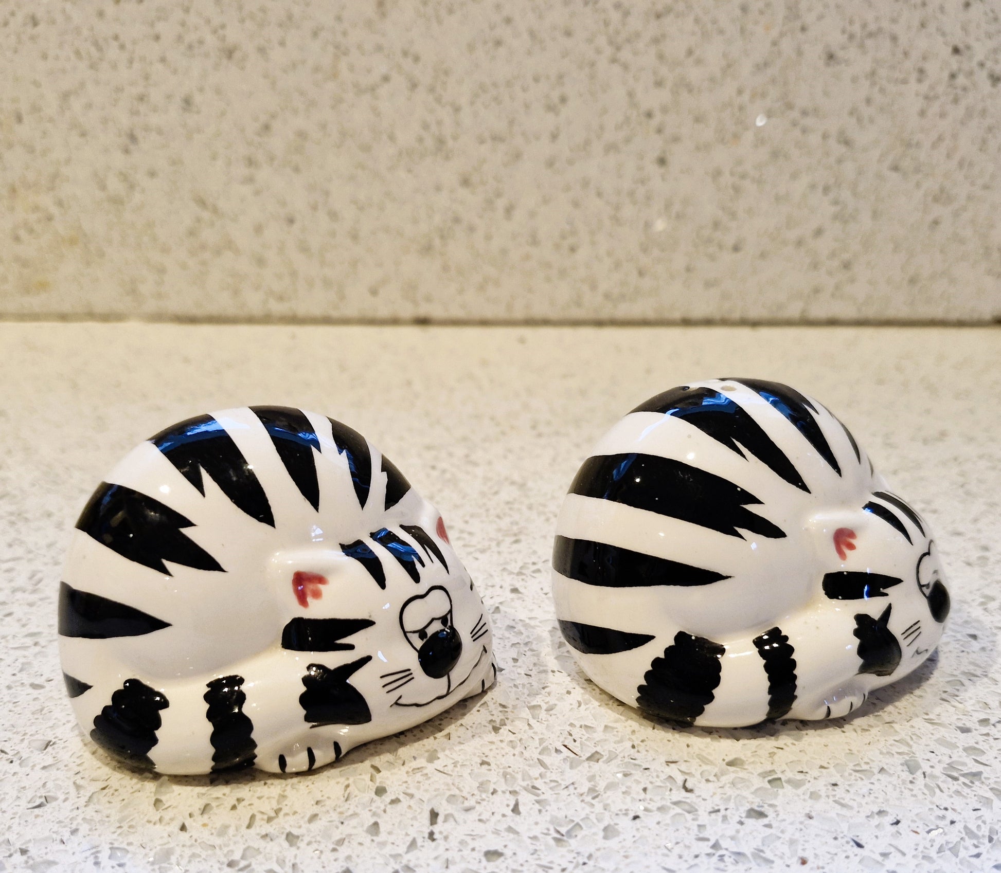 Black and White Cat Salt and pepper shakers, 1980s Kitsch, Quirky, Cruet Ser, Cats