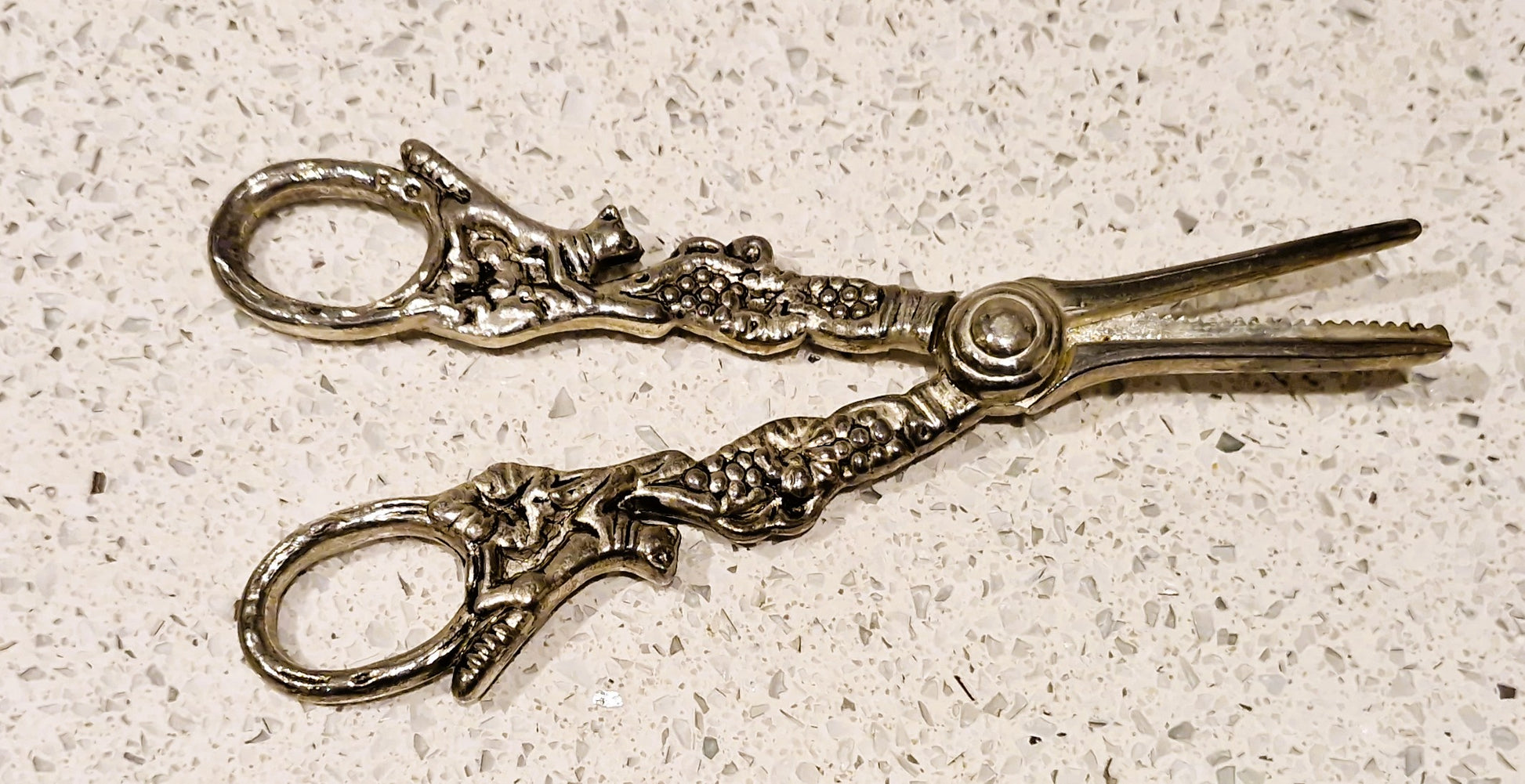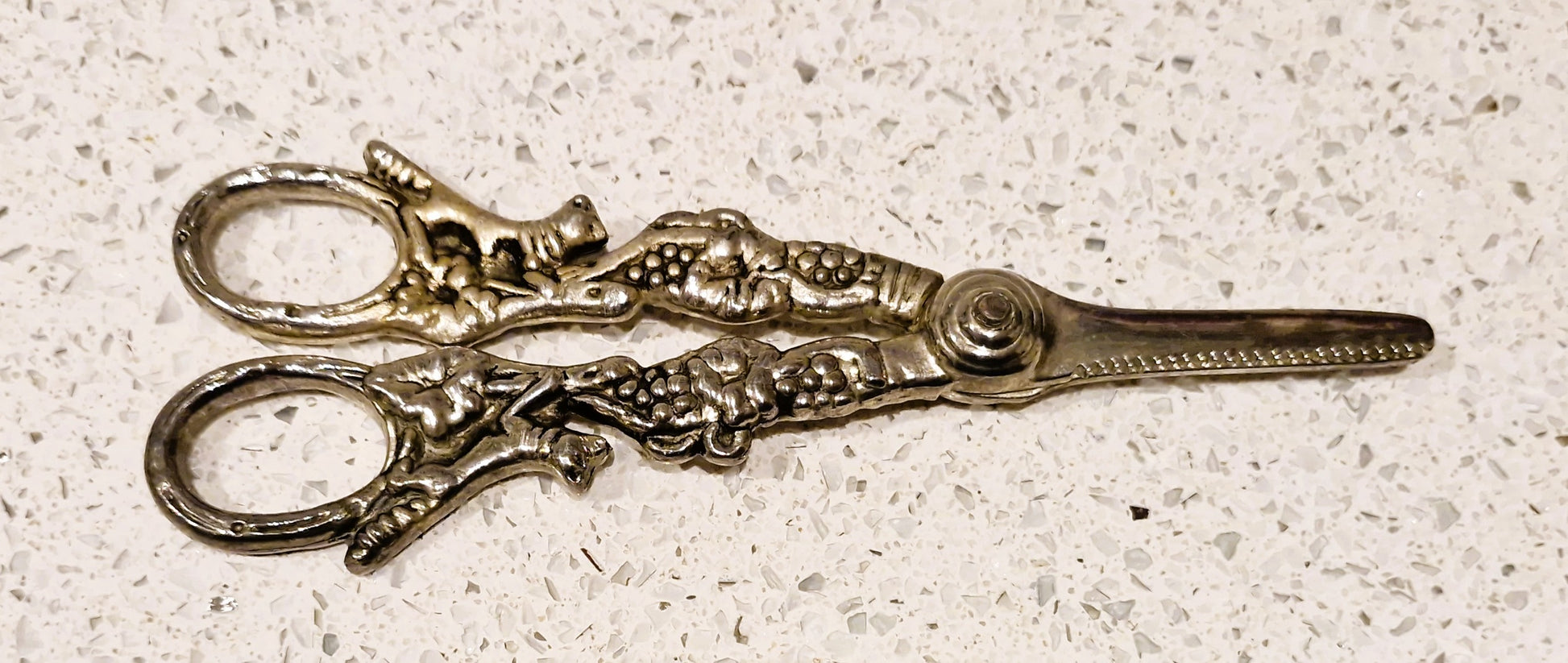 Beautiful Antique Silver plated Grape scissors, highly decorative and lovely with fgoxes on them and in lovely condition in all ways