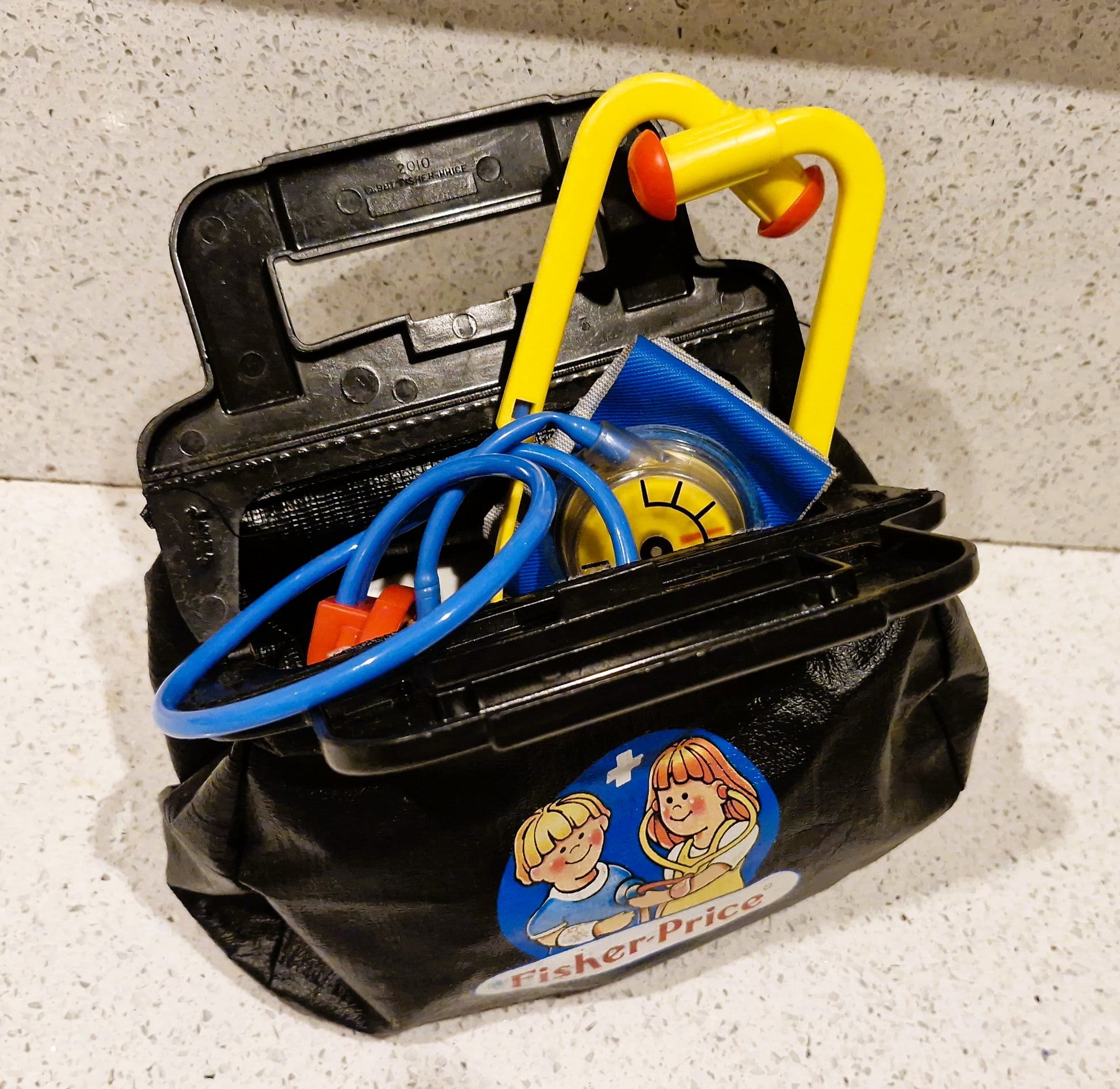 Fisher Price Doctors bag, Medical Kit, Doctor Gift, Doctor Toy, Doctors Black Bag - Very Good Condition