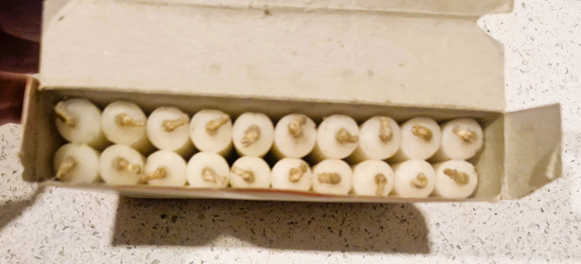 Hand Drawn, Hand Made, German Xmas Tree Candles, Feinste Gezogene Baumkerzen, Menorah, Finest Drawn Tree Candles, 20, Boxed, Angel Games,