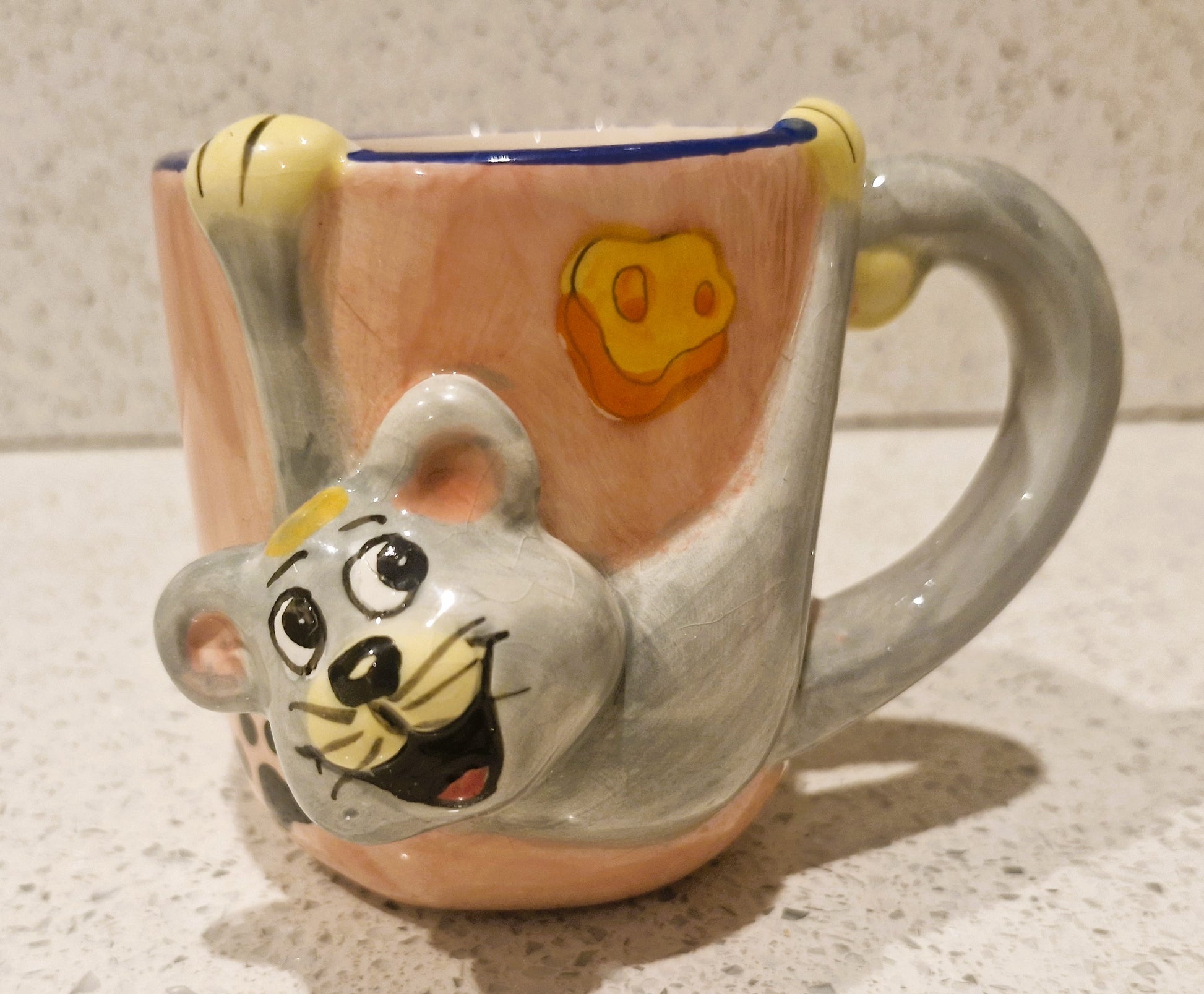 Vintage Kitsch Mouse Mug: Quirky Anthropomorphic Tail Handle