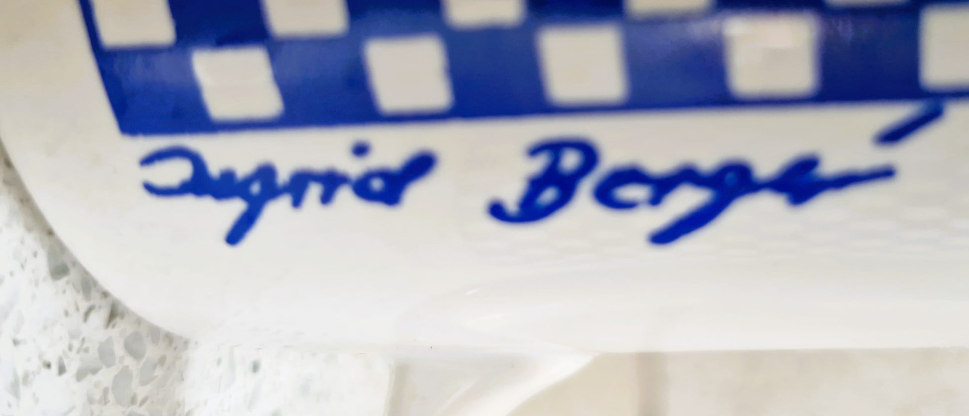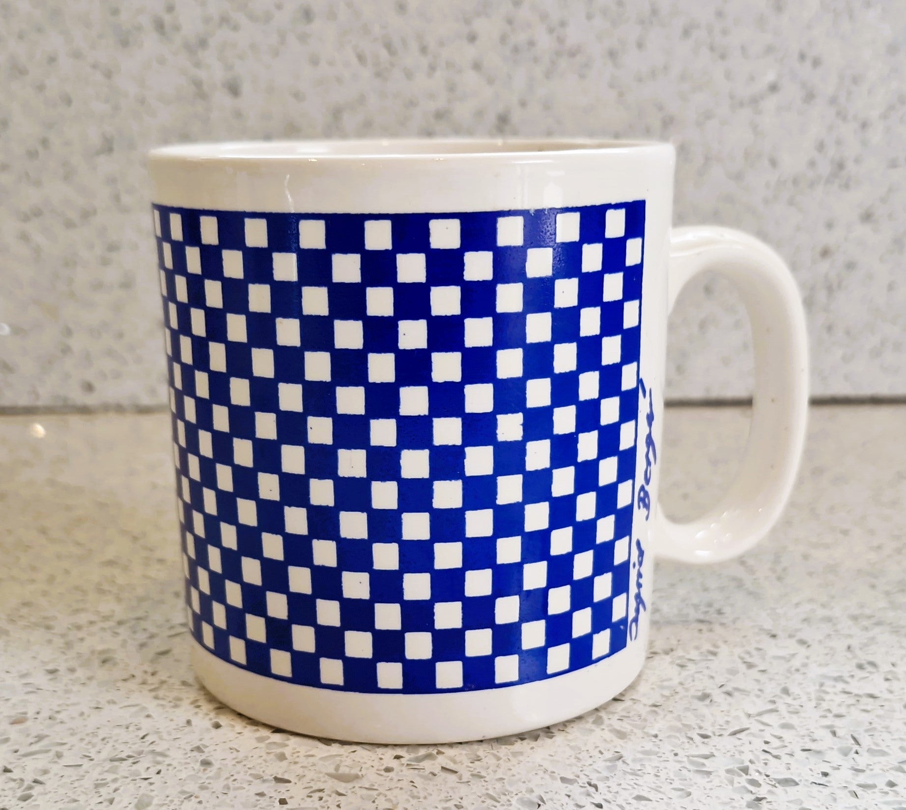 Vintage Ingrid Berger Mug: Blue & White Check Ceramic Coffee Cup, Mug