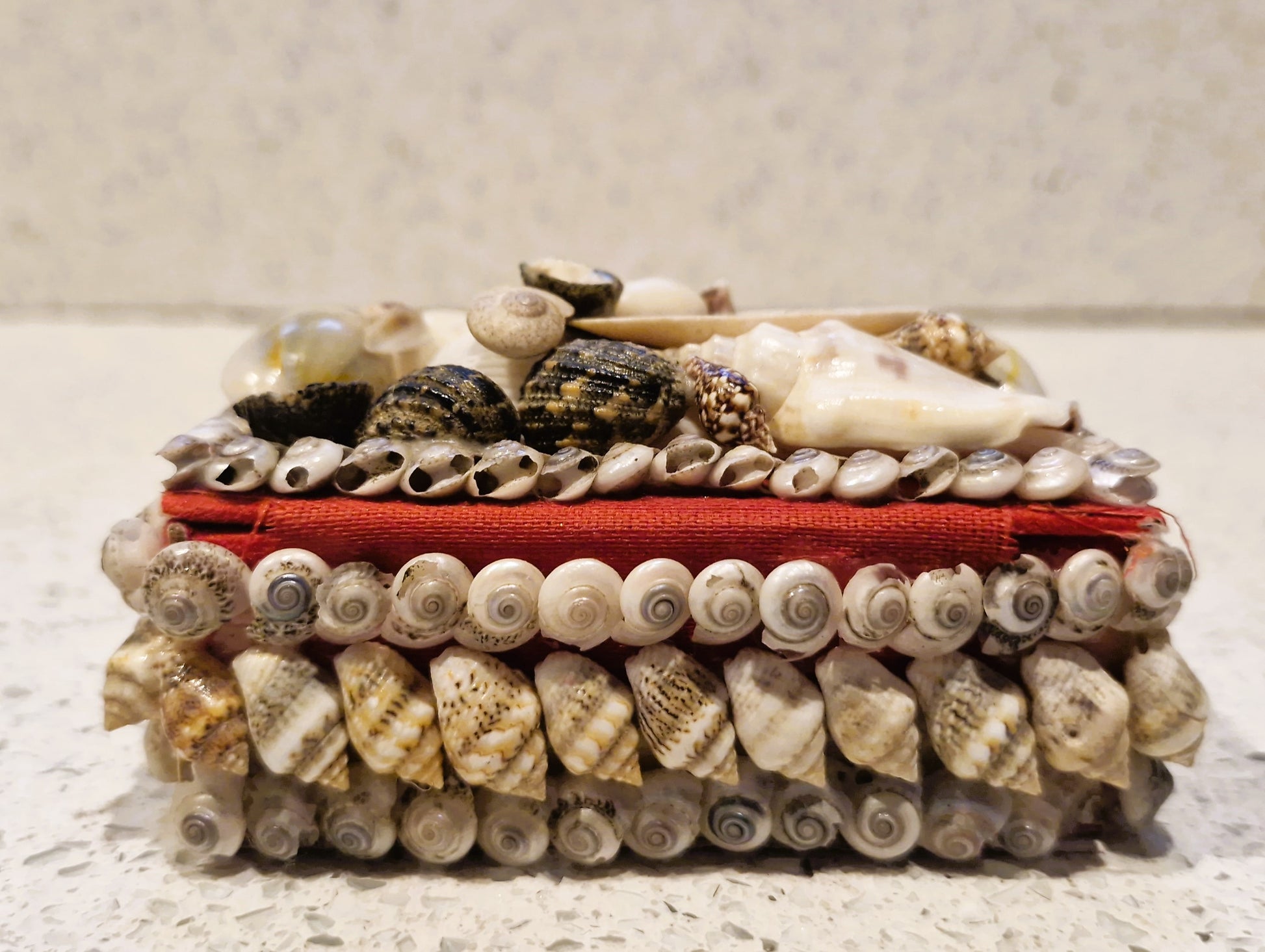 Shell Covered Jewellery Box, Vintage Sea Shell Box, Shell Trinket Box, Sea Shells, small