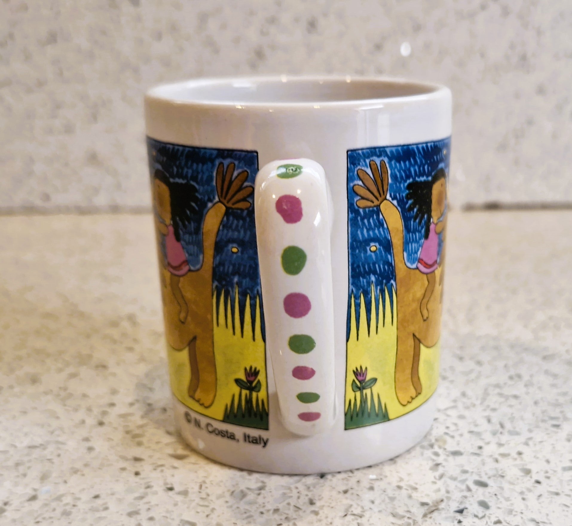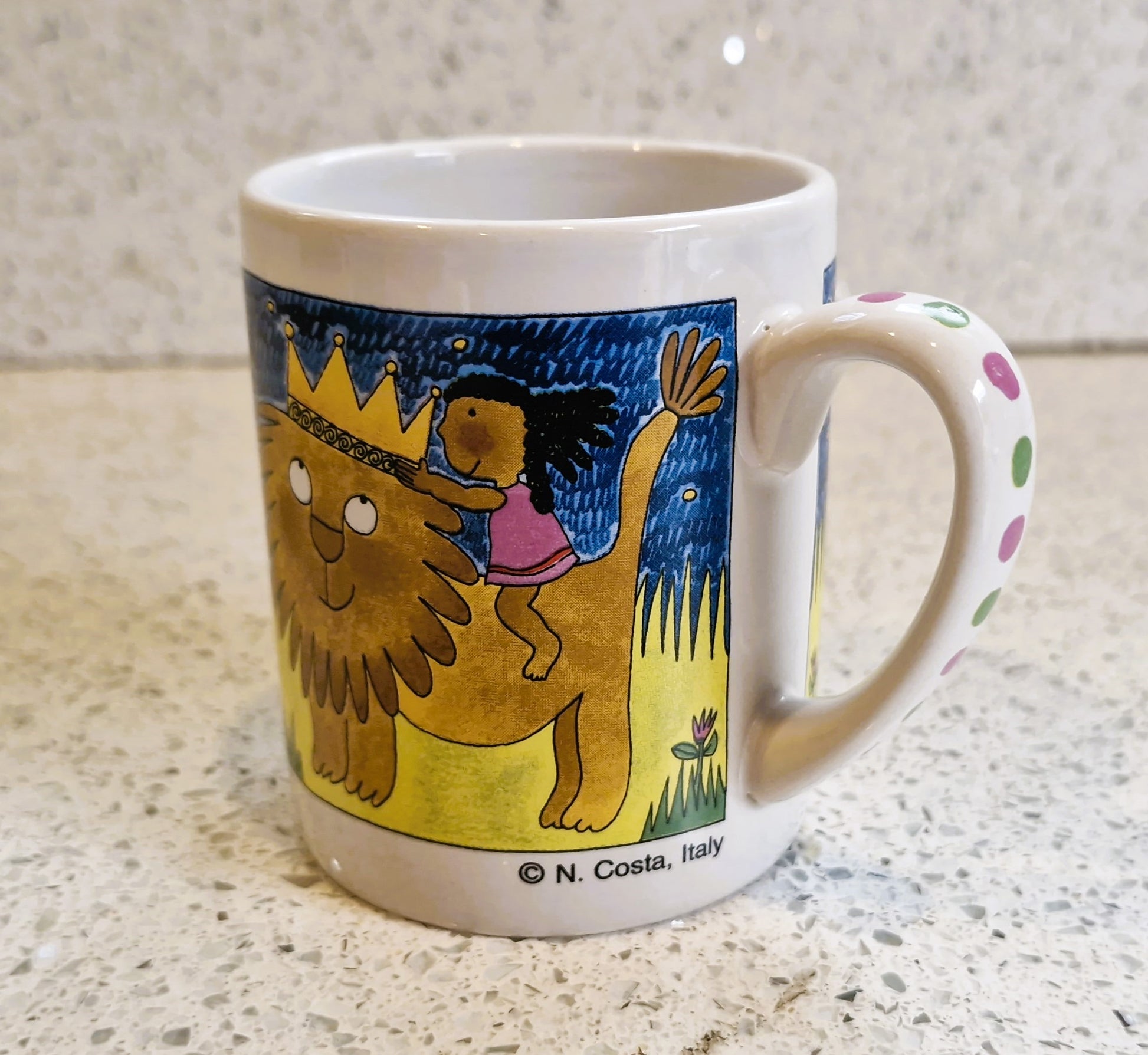 Vintage childrens mug: Lion and Girl, Unicef, N. Costa, Italy