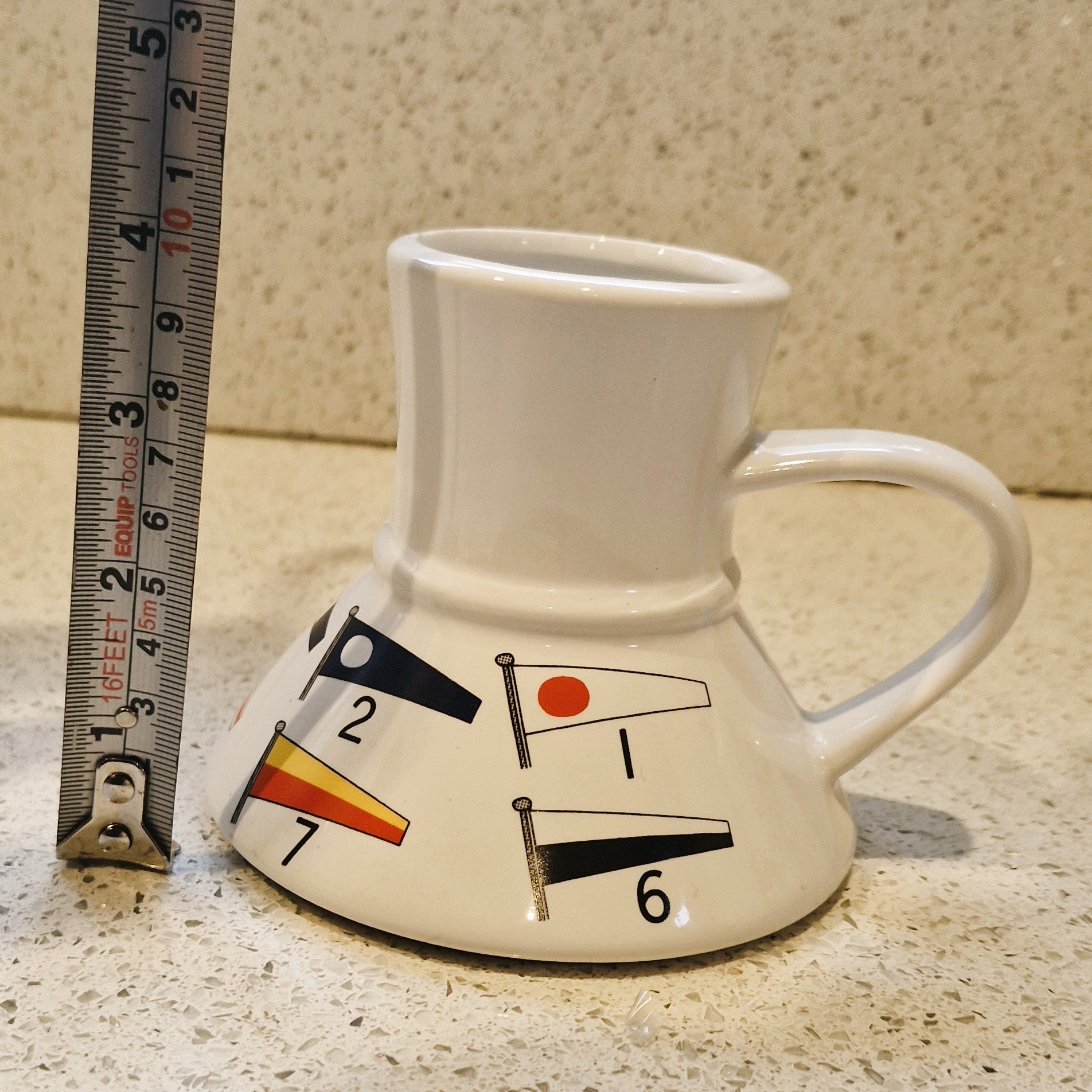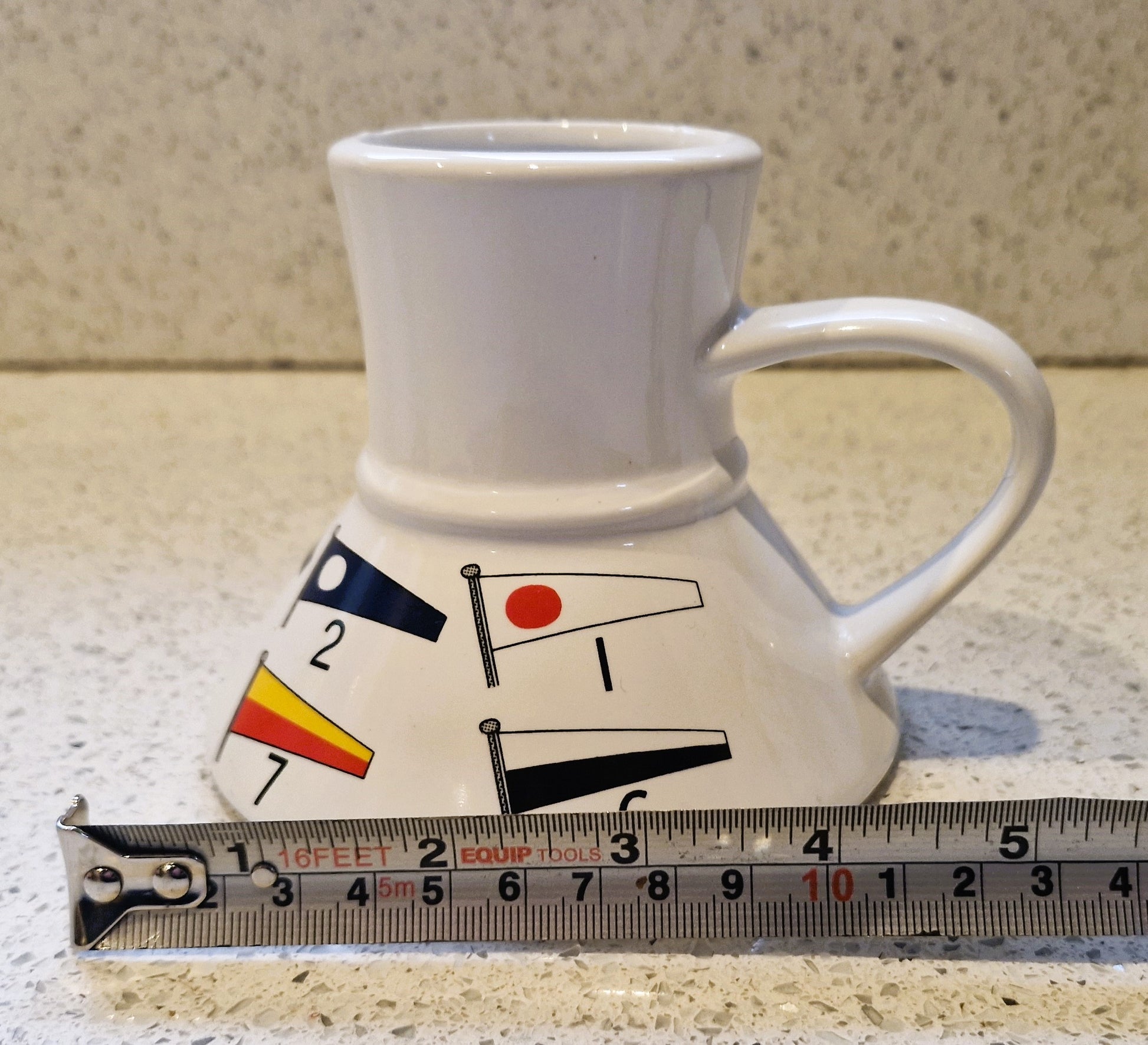 Fabulous Sailing / Yachting mug with no slip base and no spill shape, IMMACULATE condition and with great flags design