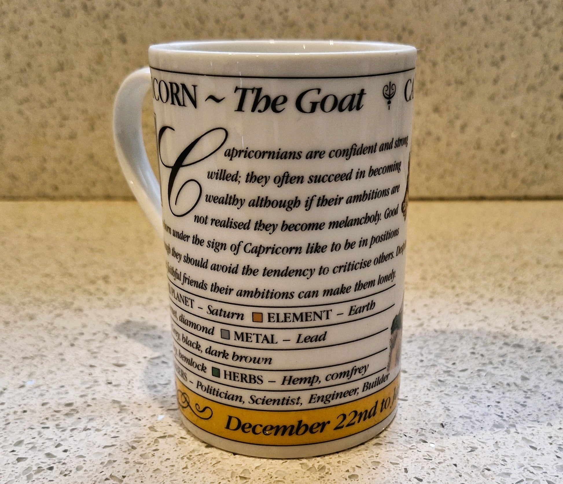 Immaculate condition vintage Capricorn Mug, would make a lovely gift item and will come carefully wrapped in lovely bright coloured acid free tissue paper and bubble wrap and be boxed in hard cardboard to ensure safe delivery
