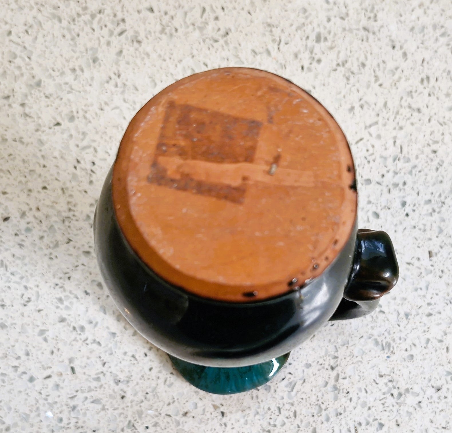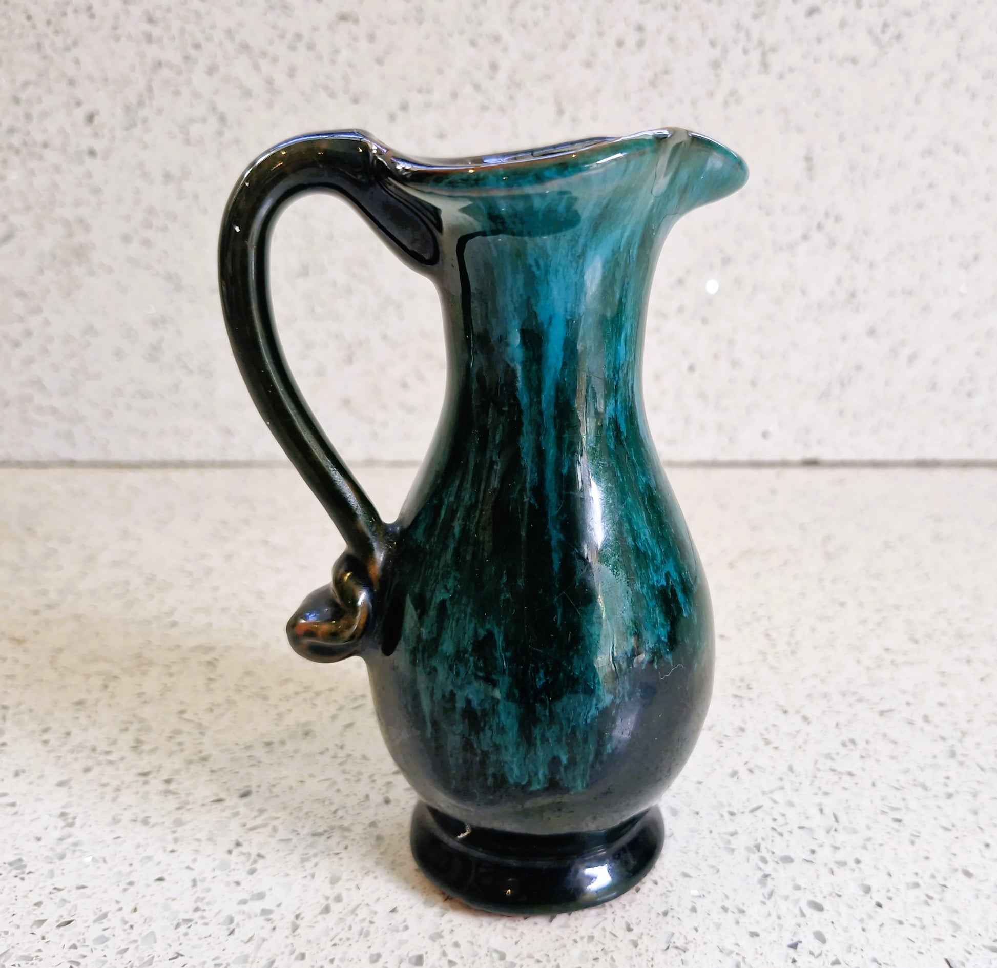 Lovely condition mid century Blue flame glaze jug / bud vase / Creamer, no chips, cracks or crazing, lovely in all ways