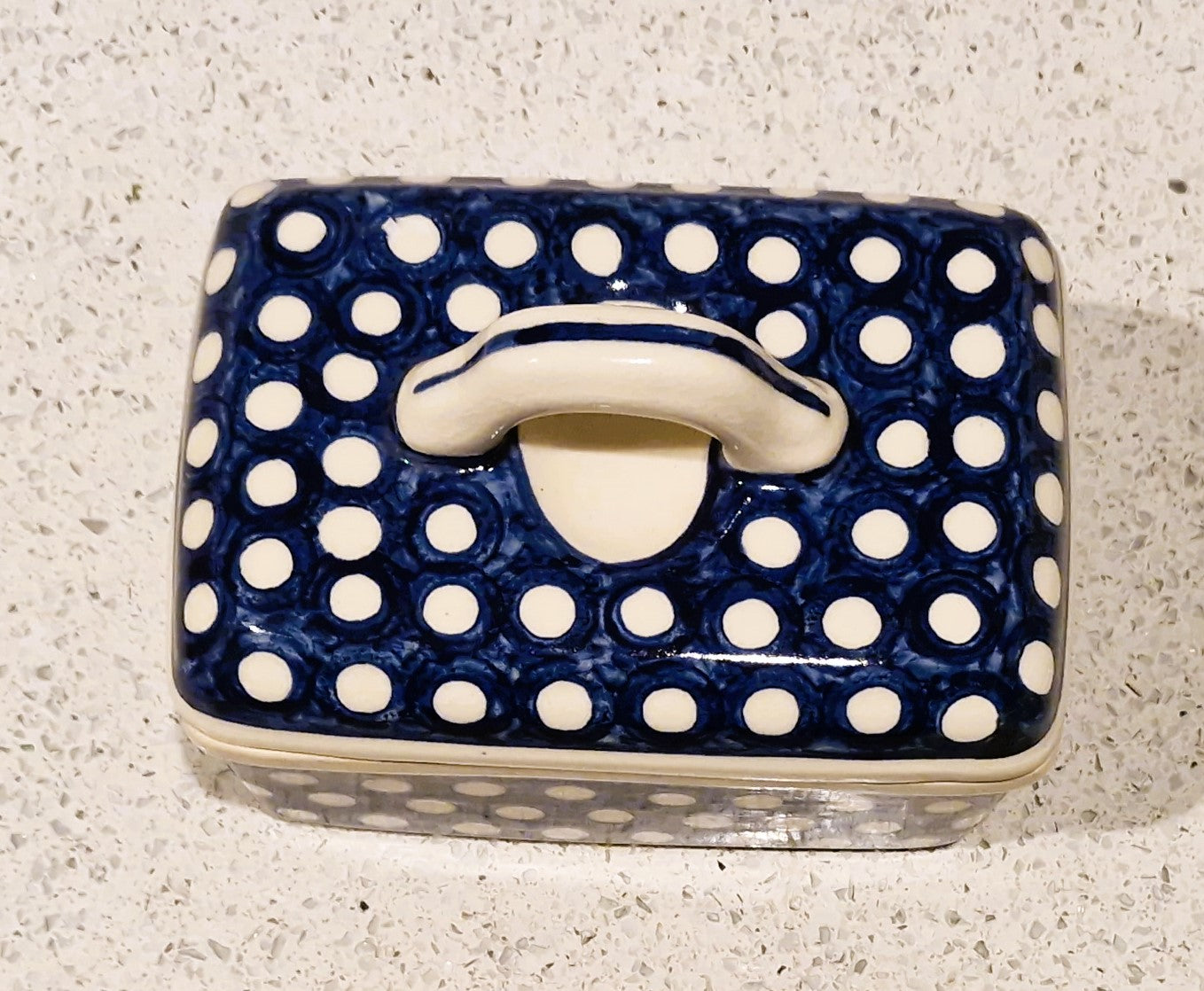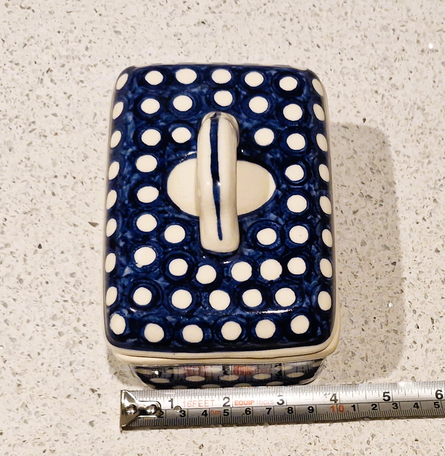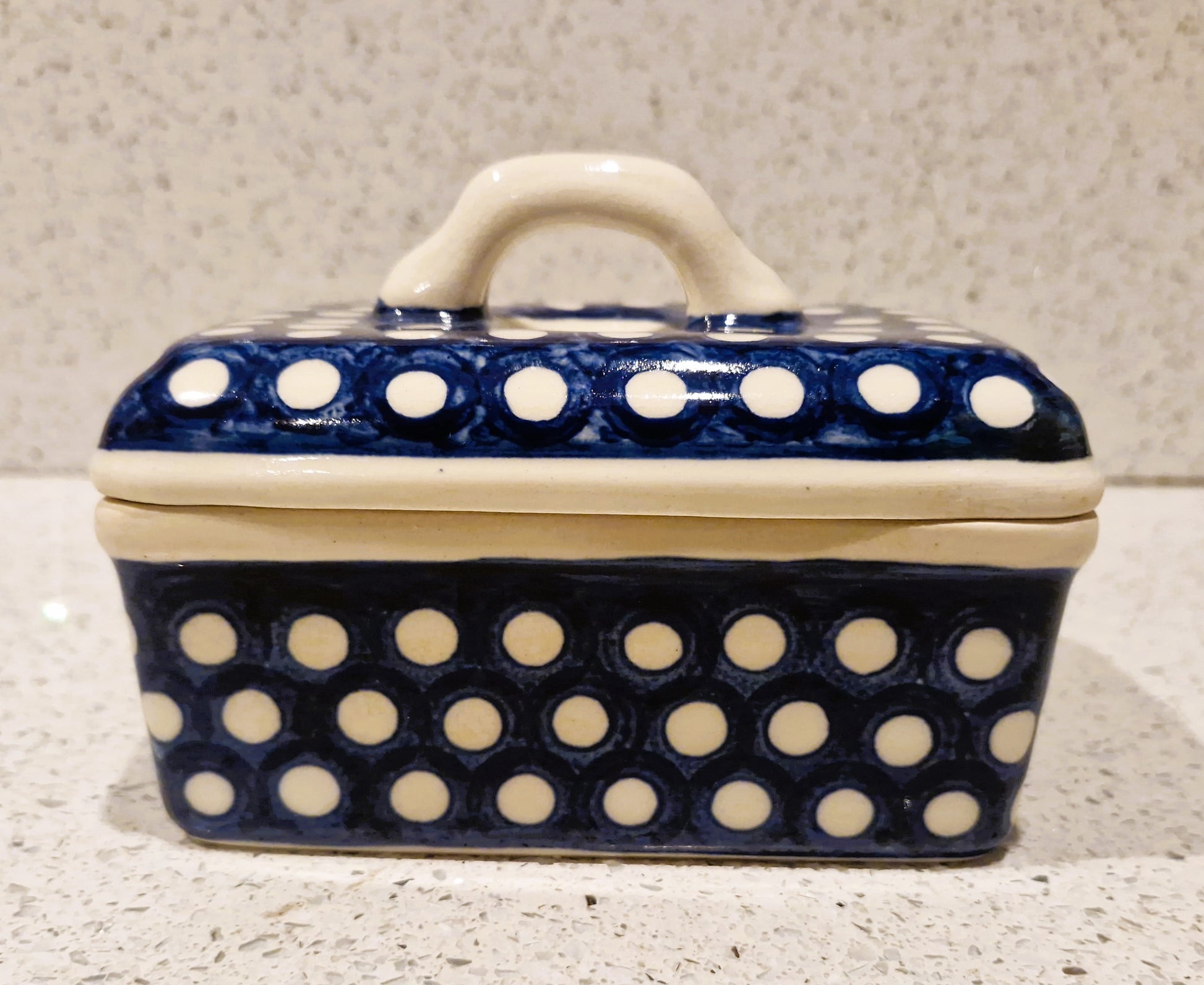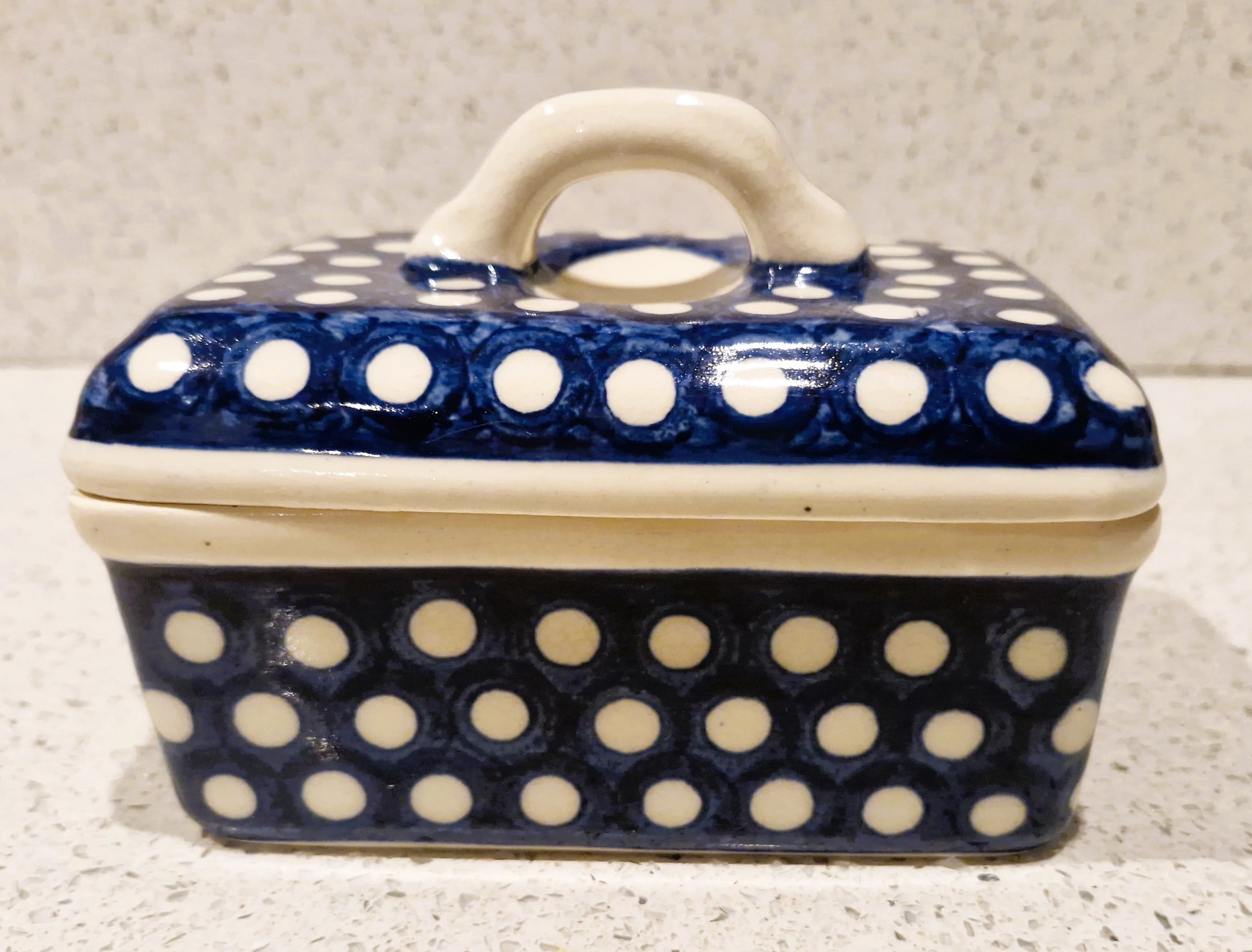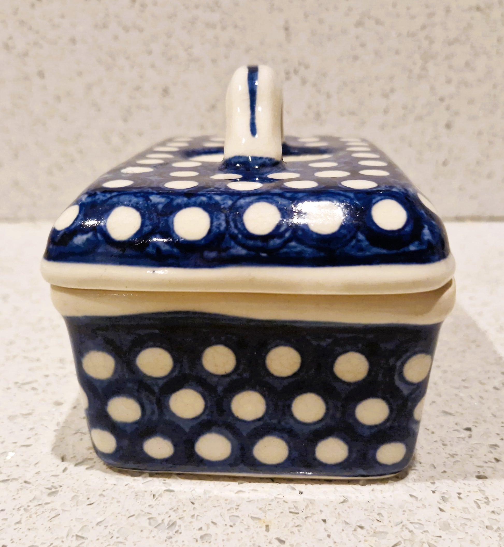 Vintage, Blue Spotted Butter Dish, Original Bunzlau Polish pottery, Bunzlau, Polish Pottery