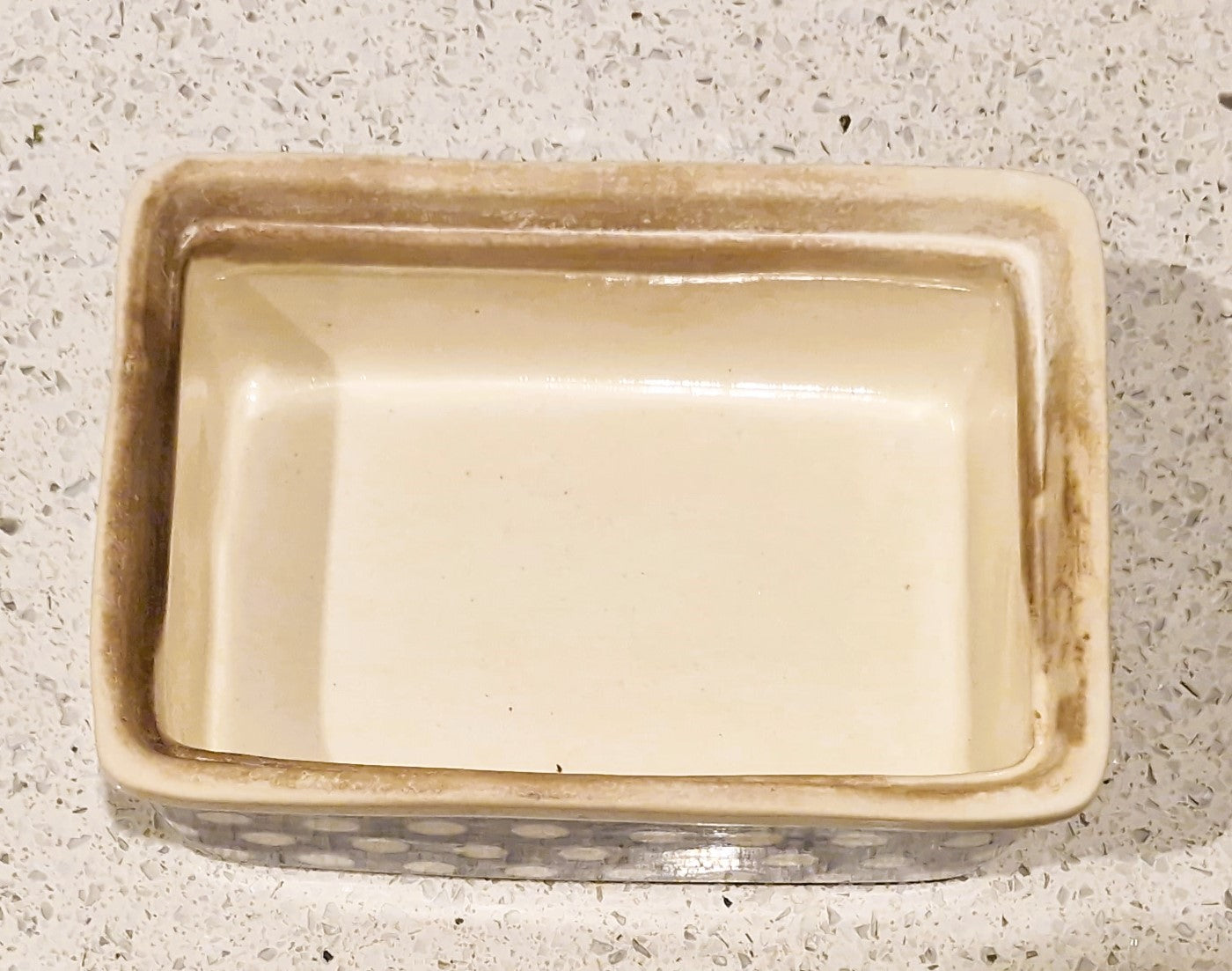 ORIGINAL VINTAGE Bunzlau Polish pottery Butter dish with lid, no chips, cracks or damage, some signs of use on inside as pictures show