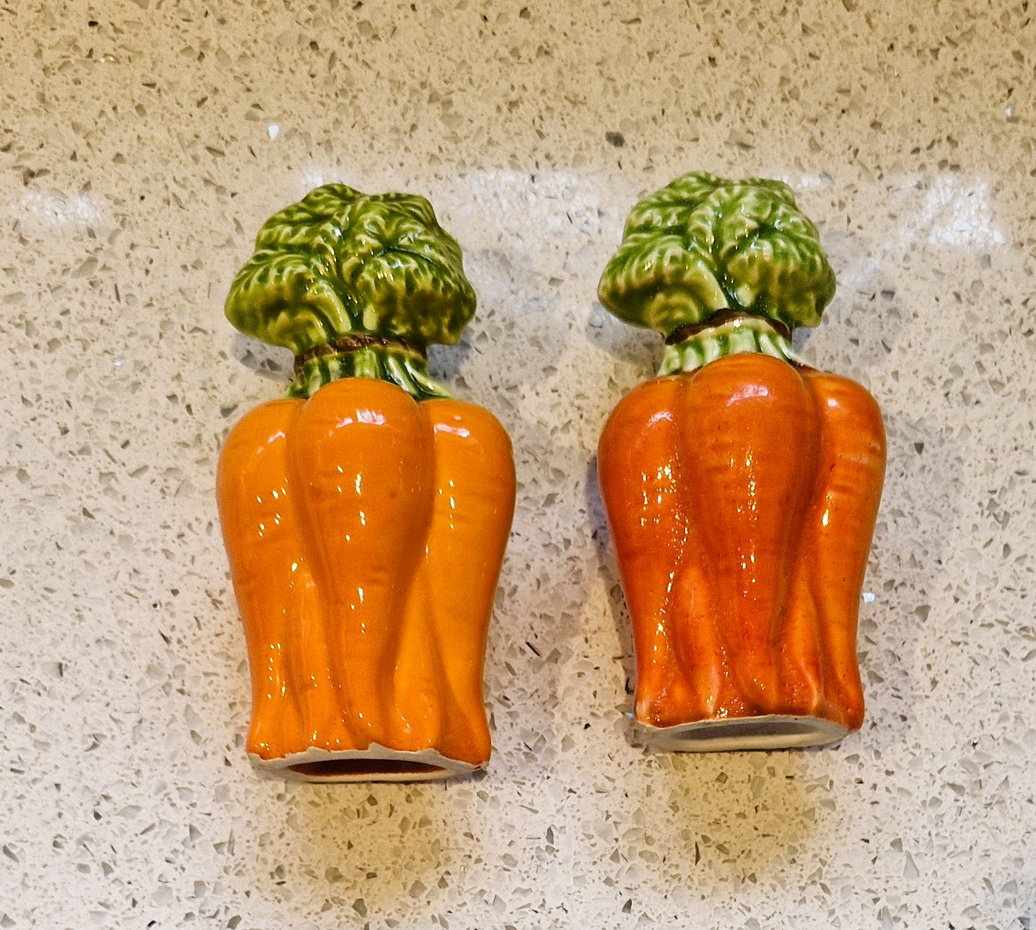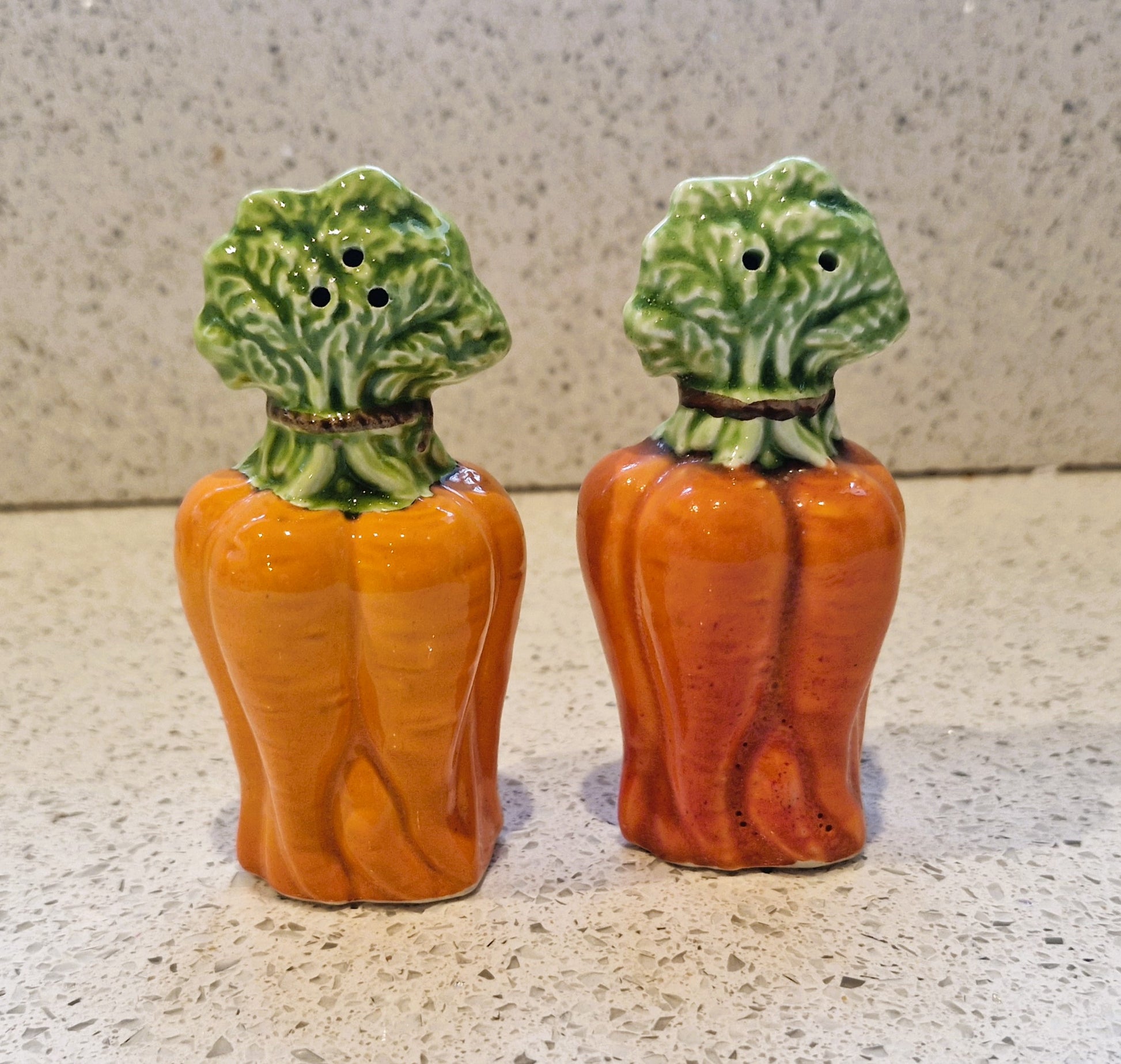 Vintage Carrot shaped Ceramic Salt and Pepper Shakers: Quirky Kitsch Cruet Set