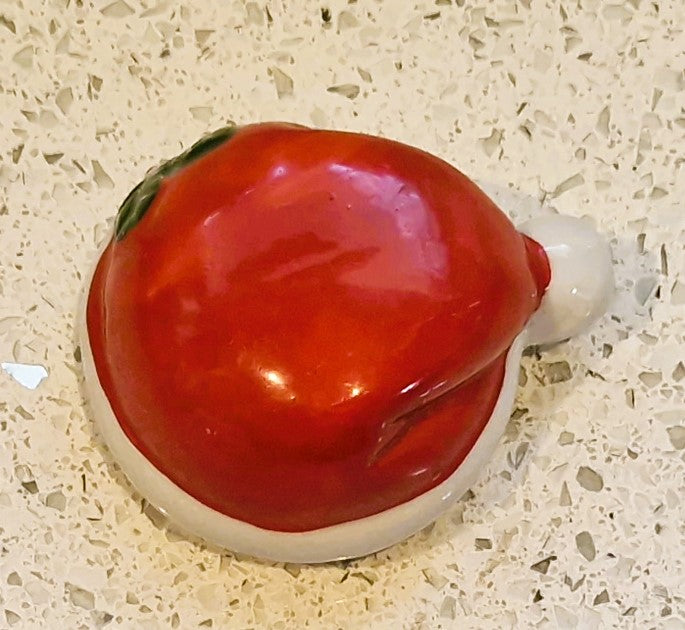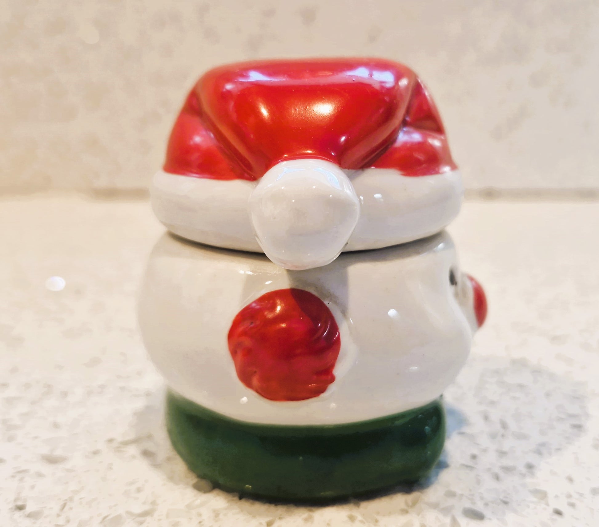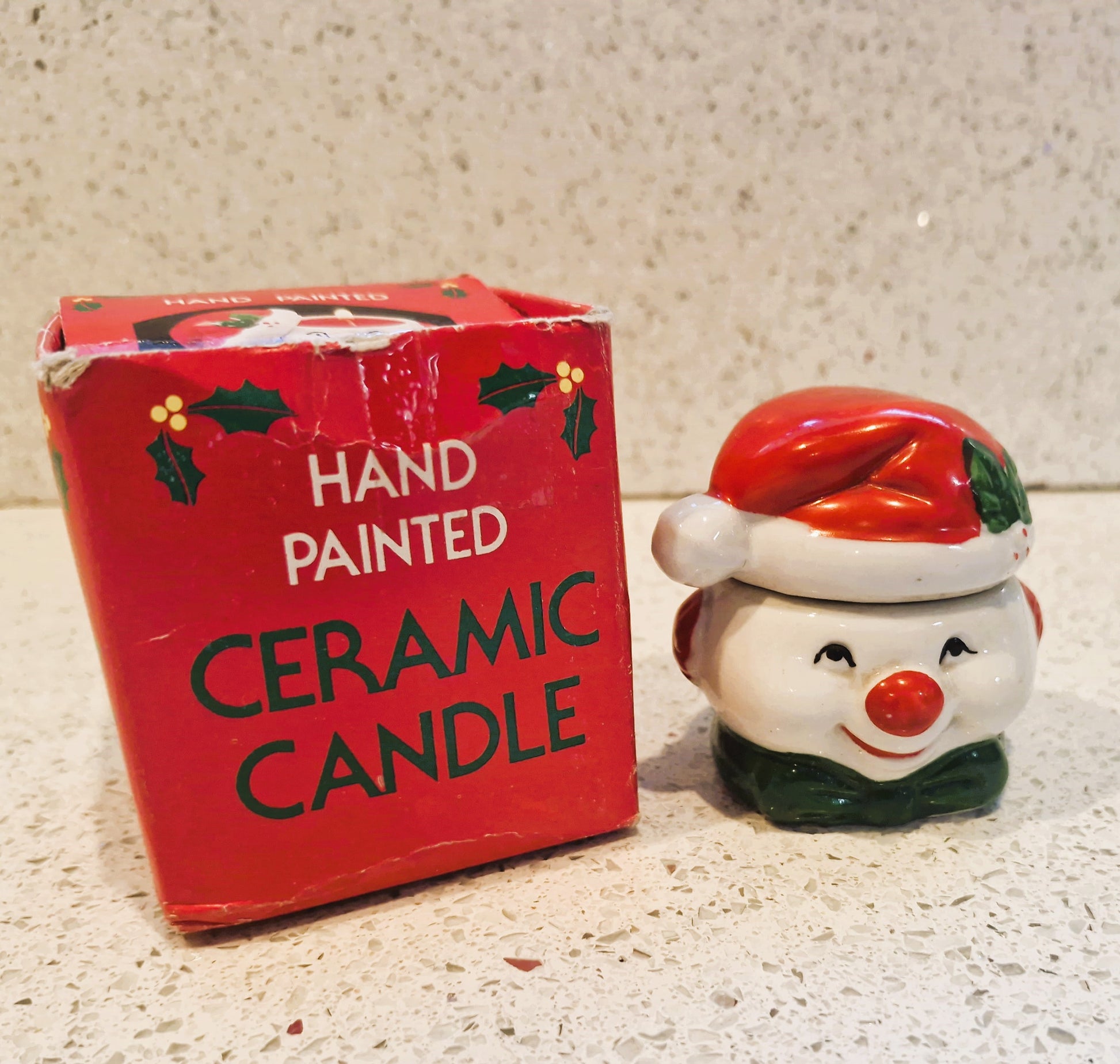 Very good condition, no cracks, chips or damage of any kind, Lovely cute quirky pre loved Tea light holder from Woolworths, with a santa hat to help put candle out when not in use. Candle has been part used, but holder is obviously designed to replace the candle and I have checked size and nicely fits tea light size candles as pictures show