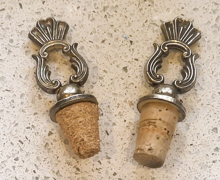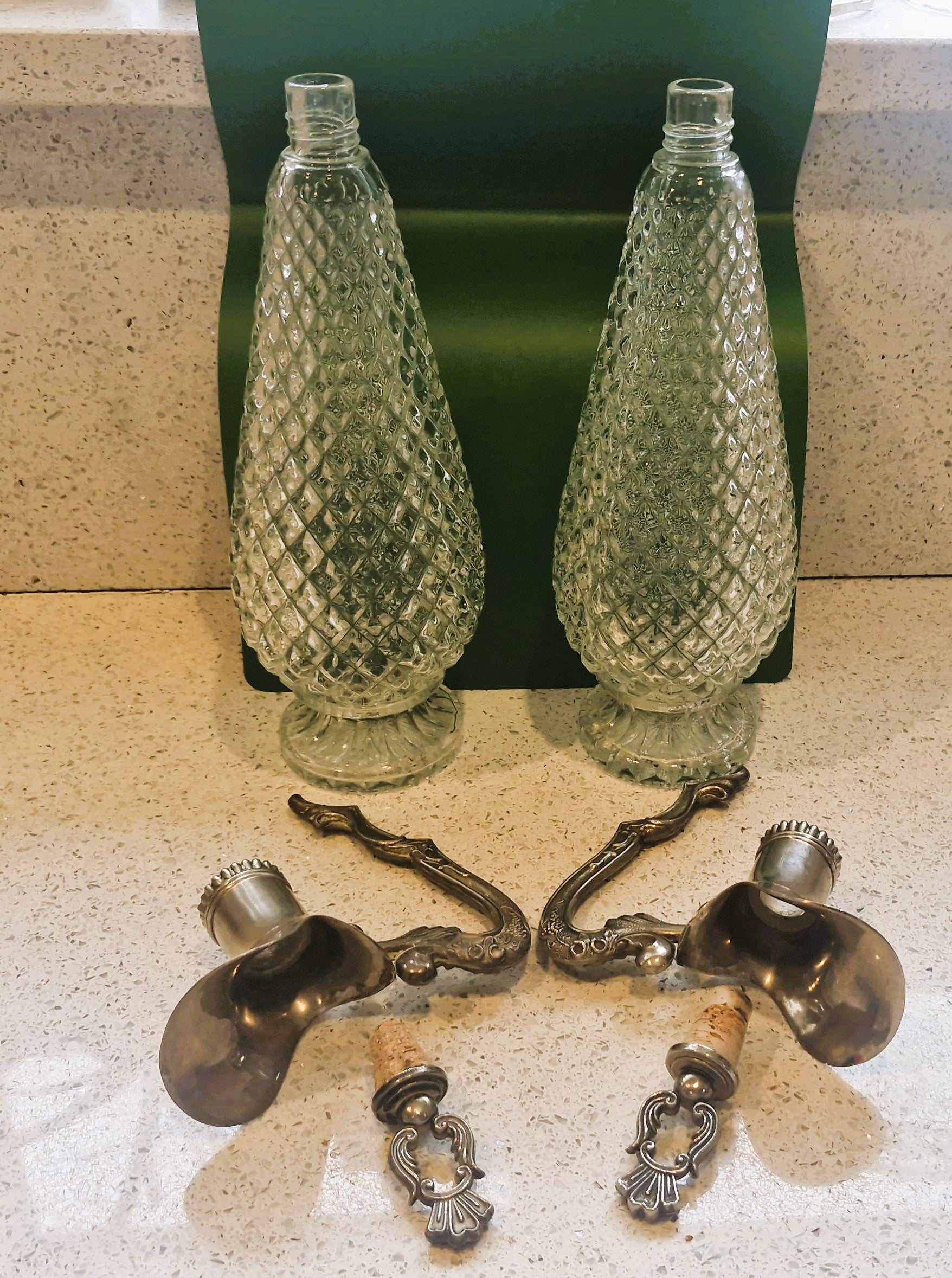 Vintage Cut Glass Wine Decanters: Art Deco Silver Pewter, Matching Pair of WIne Decanters, Italian, Vintage, Rare