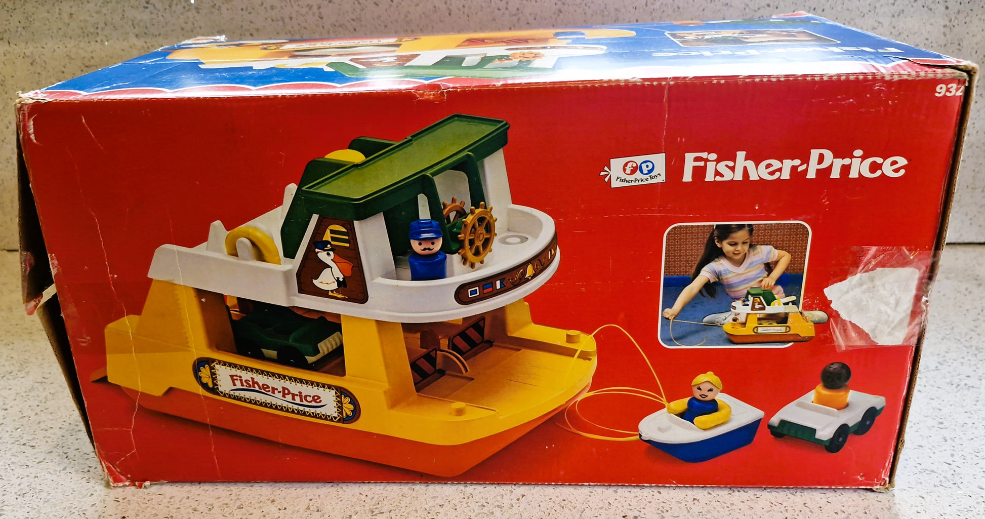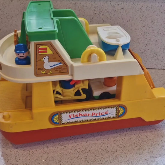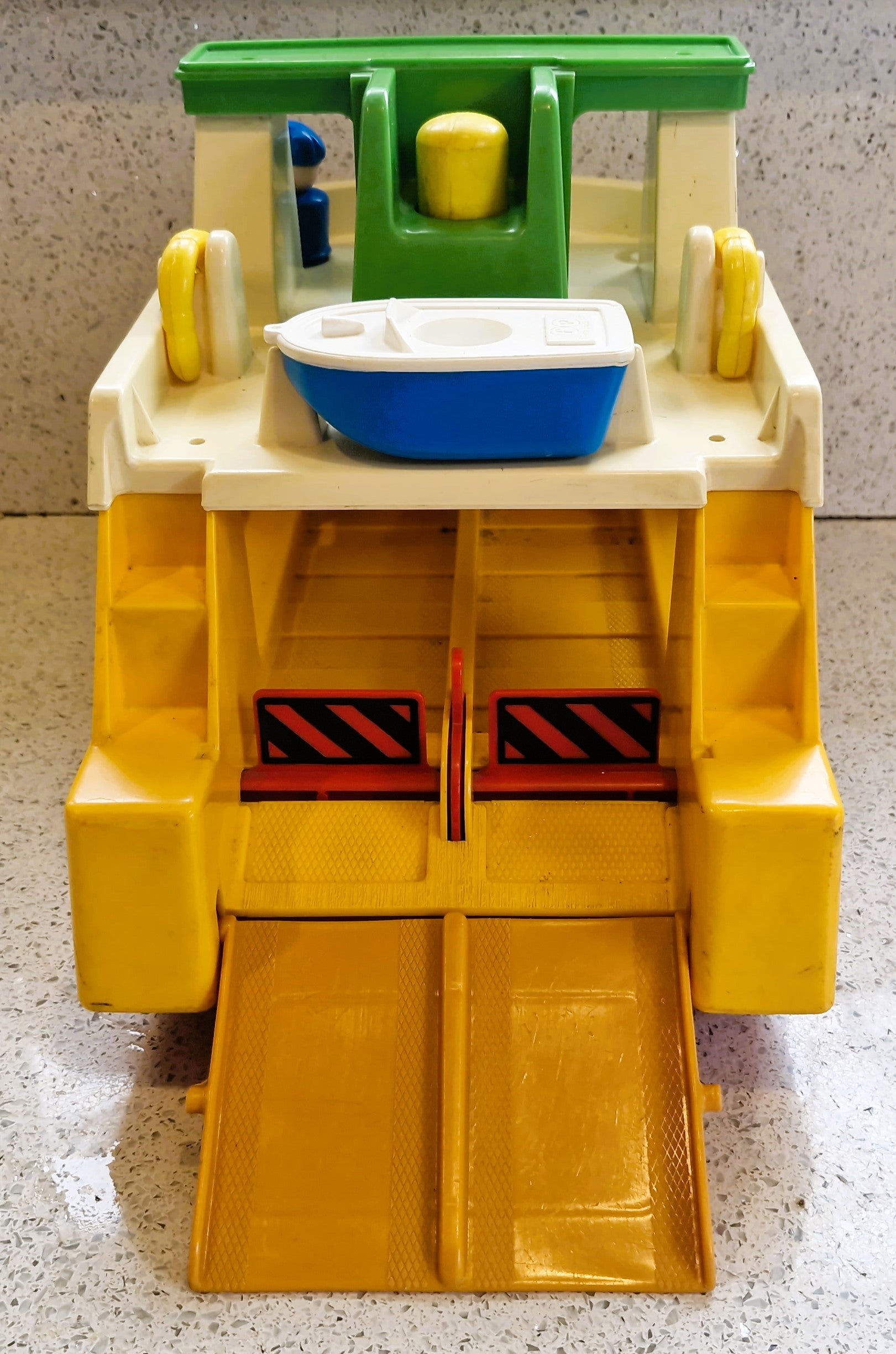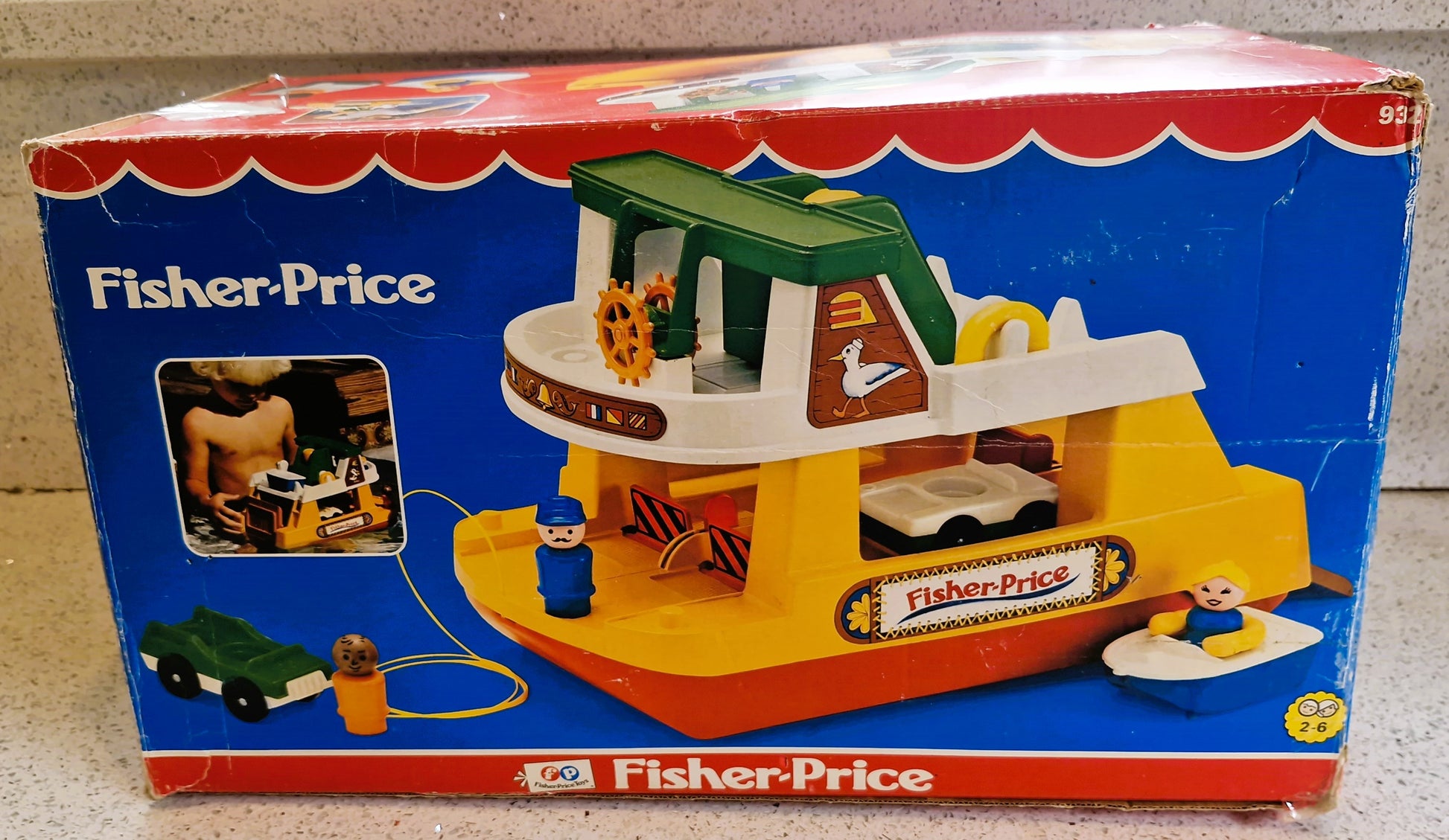 Vintage Fisher Price Ferry Boat Set: 6 Cars, 8 People, Motorbike, Boxed