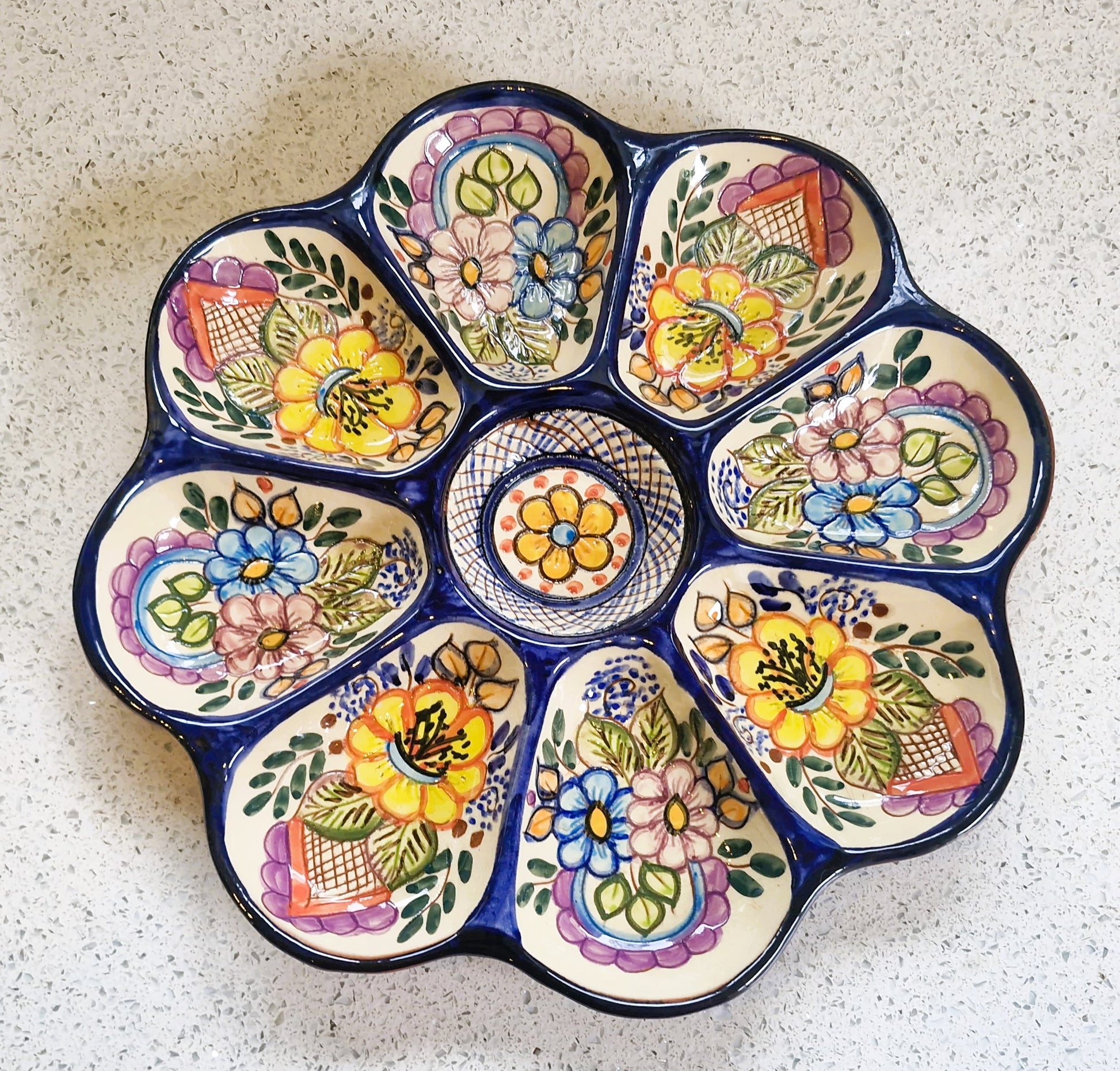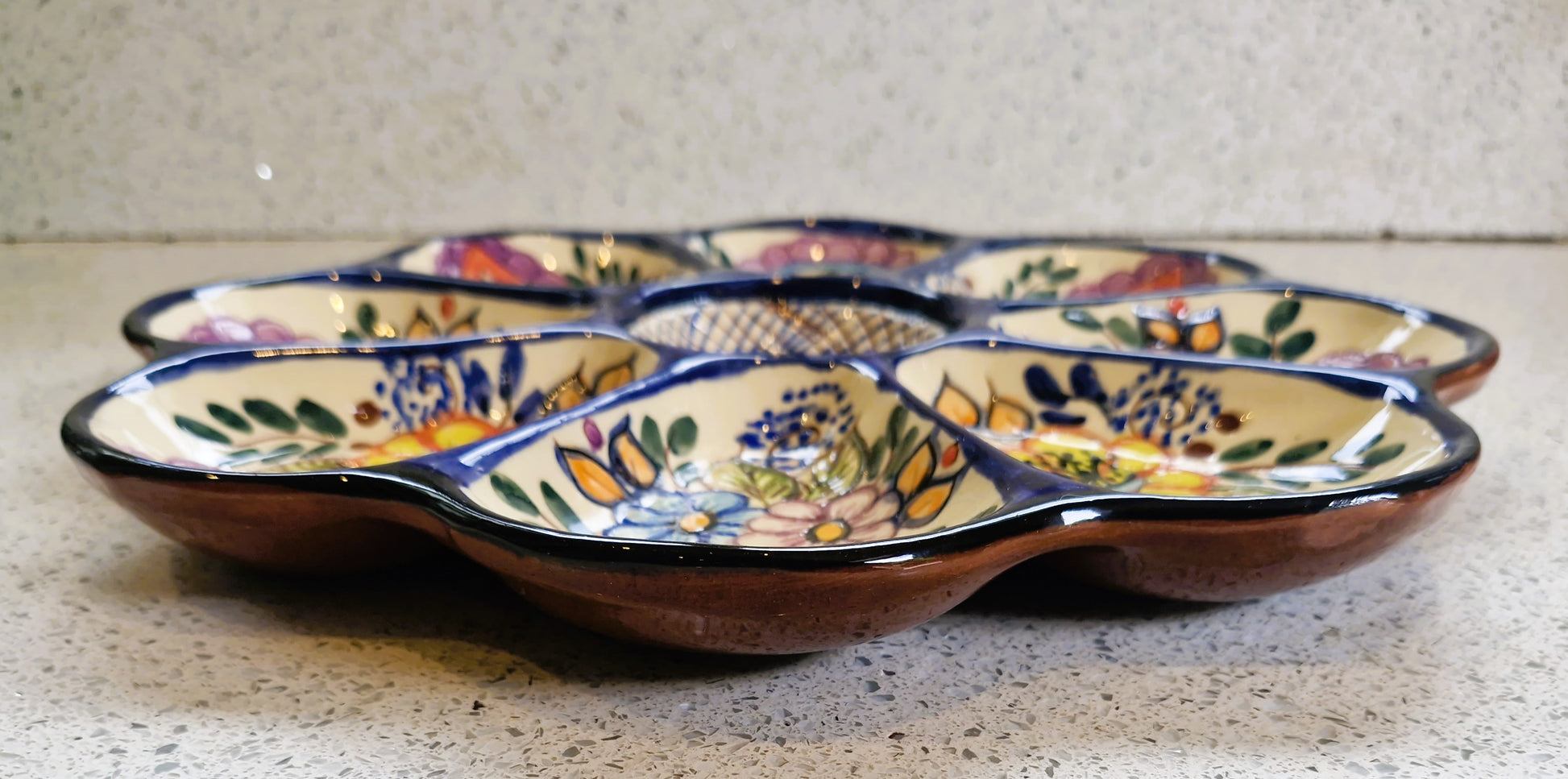 Handmade Sectional Tapas Platter: Hand-Painted Pottery from Portugal