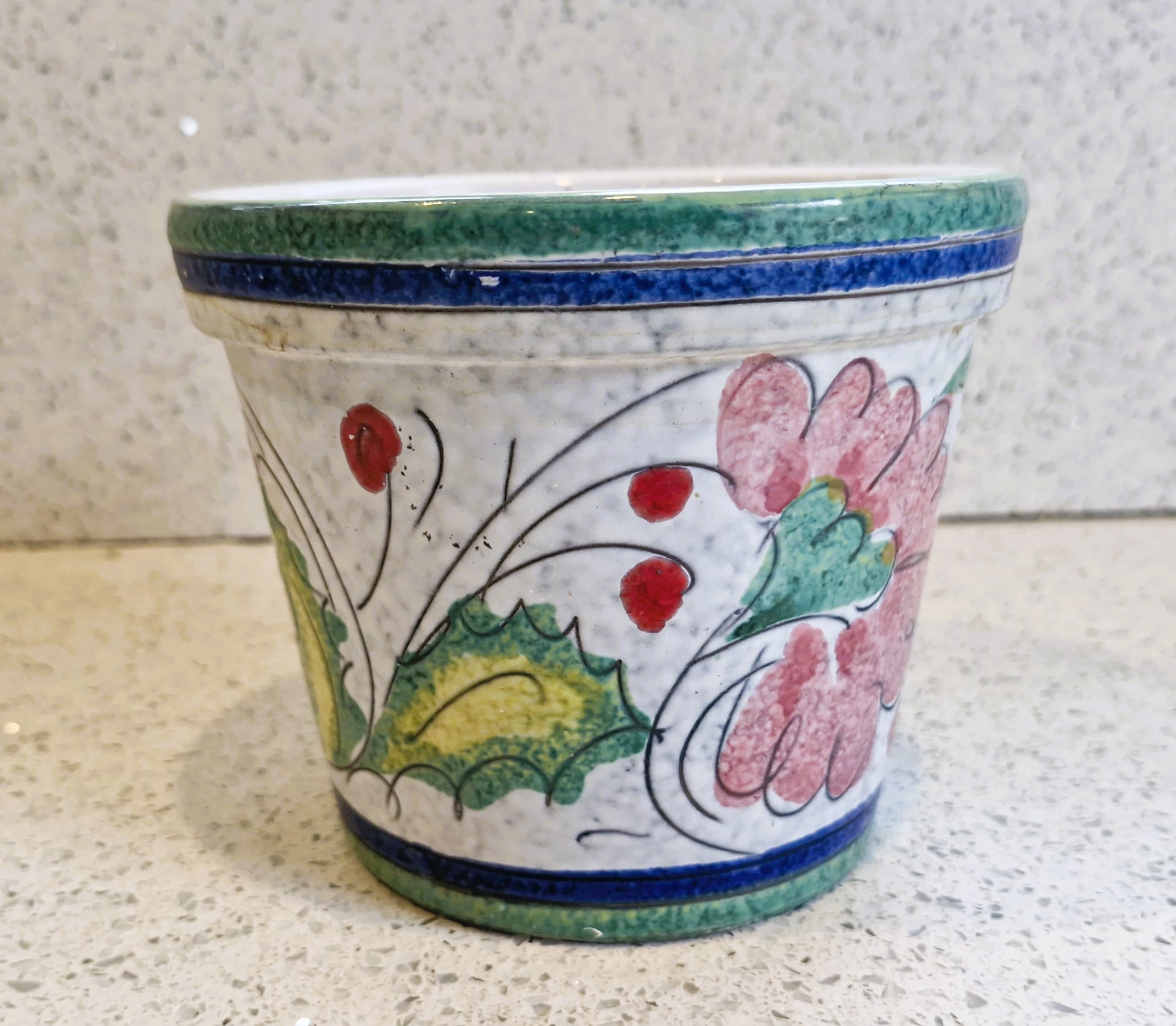 Vintage Italian Plant pot, Indoor planter, Hand Painted, Mediteranian, Lava, Hand Made