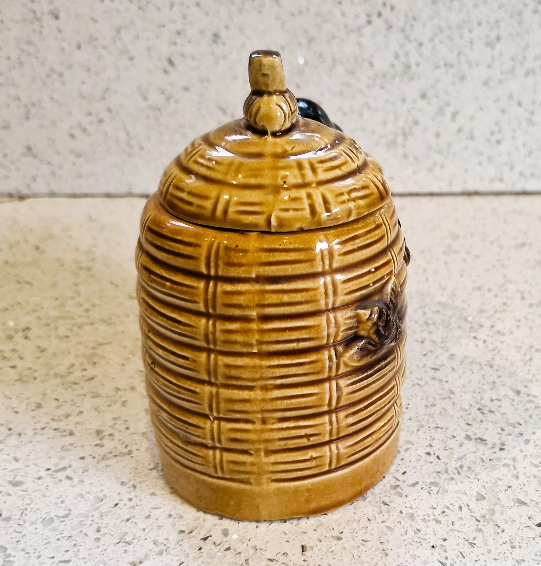 Vintage Honey Bear Honey Pot, with Bees, Honey Miel, Mid century, Honey Pot, Bee Hive , Honey Bear