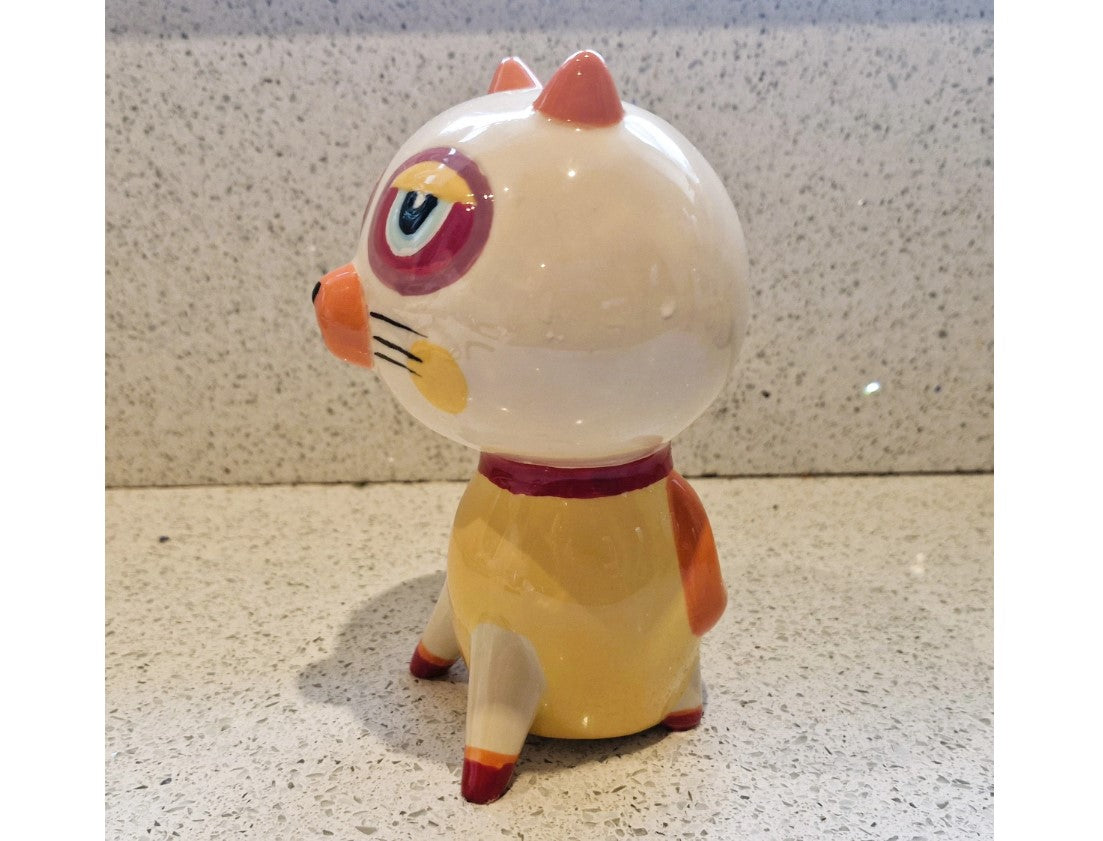 Large Head Cat Ceramic money Box, Sputnik, Cat Money Box, Large Head Cat, Ceramic, 7 Inch, Bright, bold, colourful, Retro, hand painted