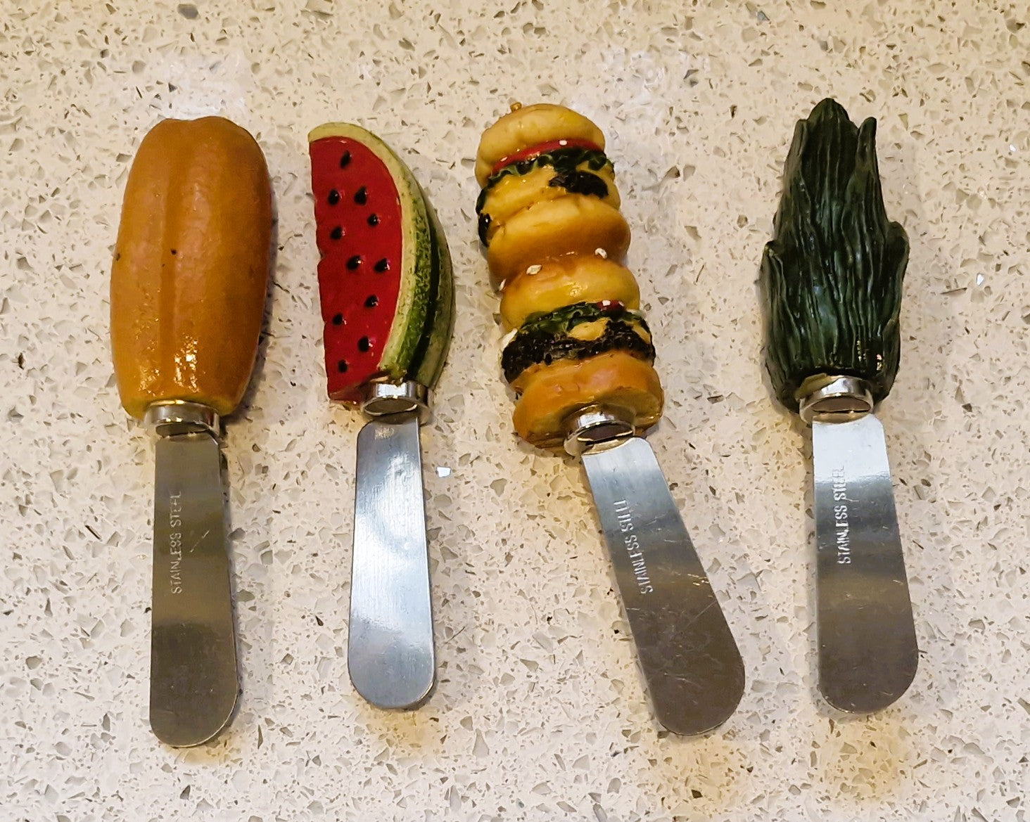 Vintage Vegetable, Burger and Hotdog Handle Butter Spreaders: Kitsch Quirky Spreaders