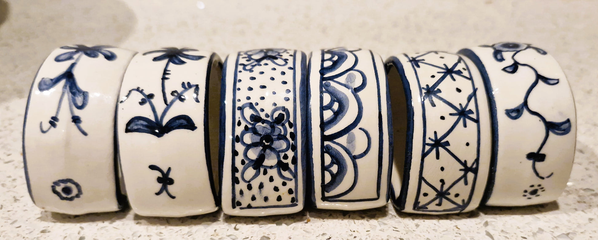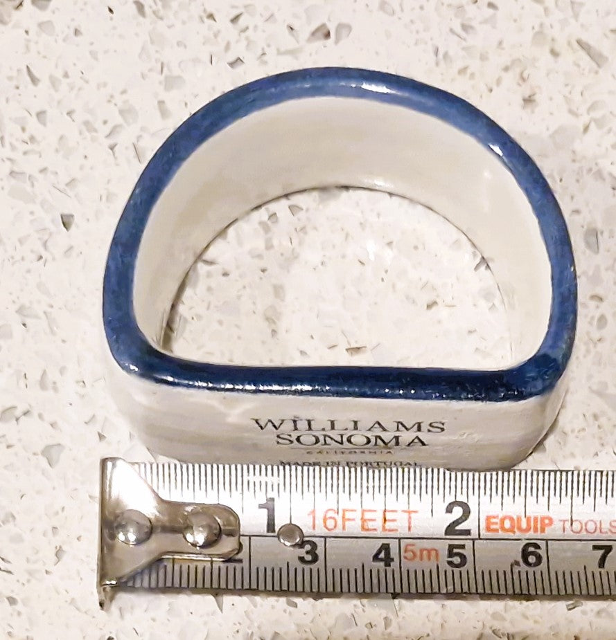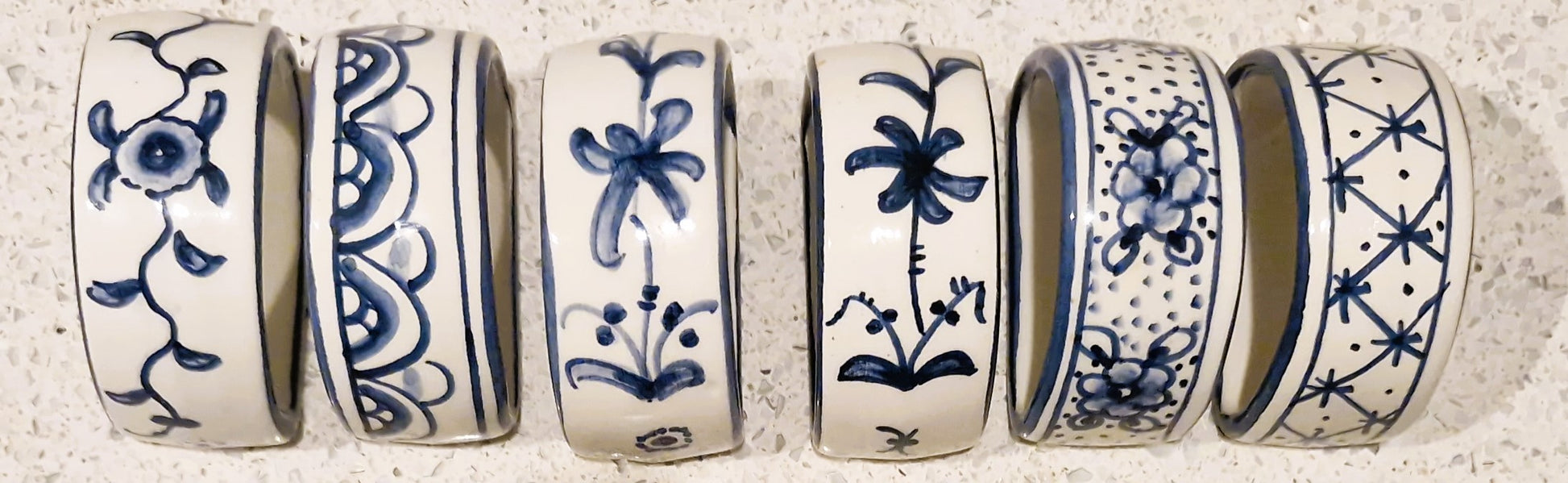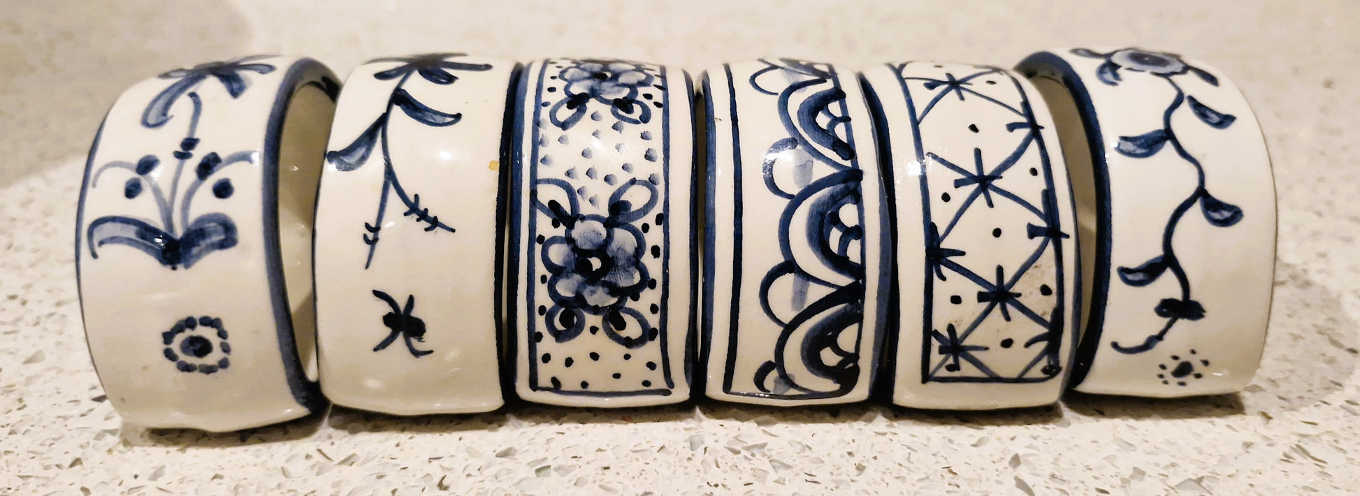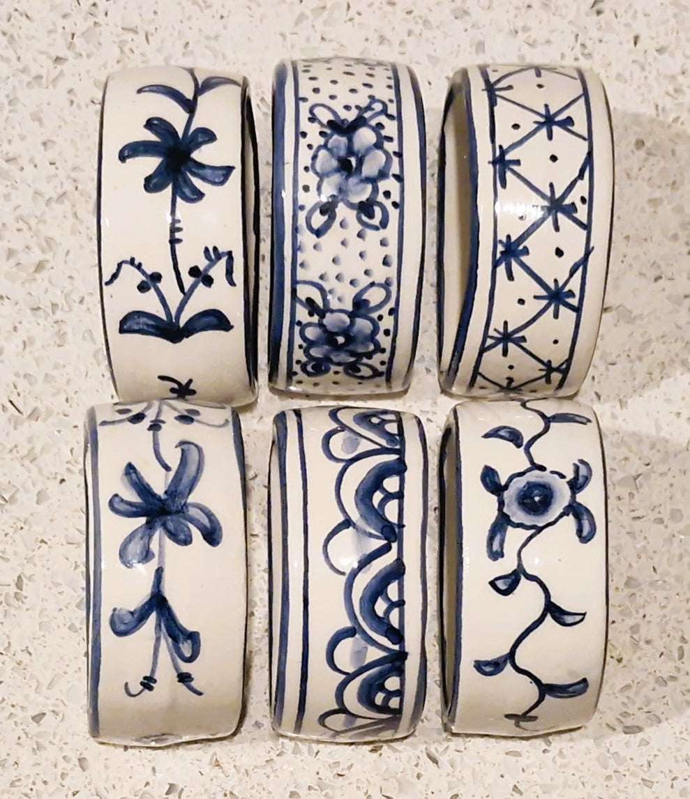 Vintage Williams Sonoma Ceramic Napkin Rings: Blue Floral Hand-Painted
