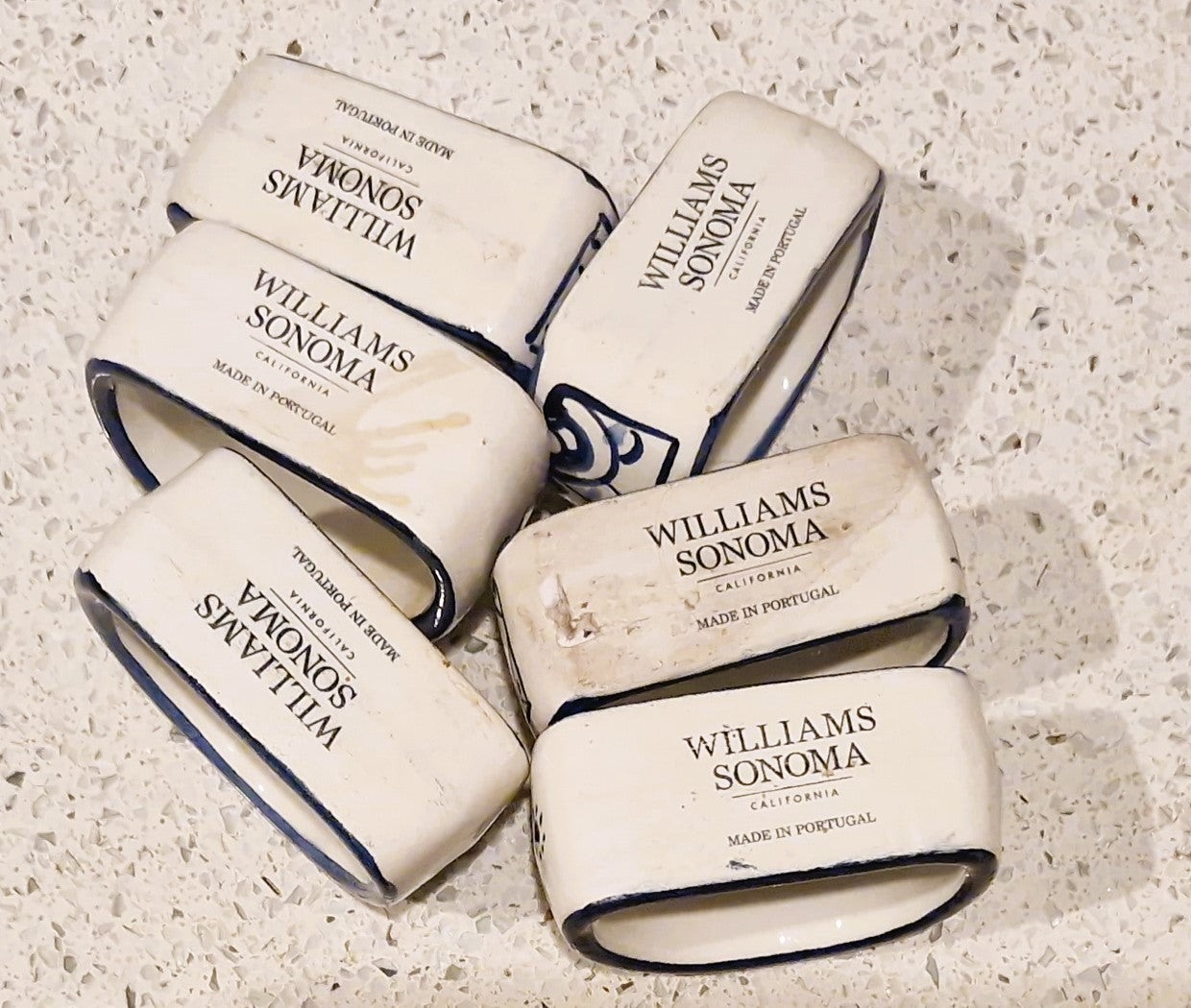 Beautiful and in excellent and totally undamaged in any way, these Napkin rings were each individually made and individually painted in Portugal and sold by Williams Sonoma in California