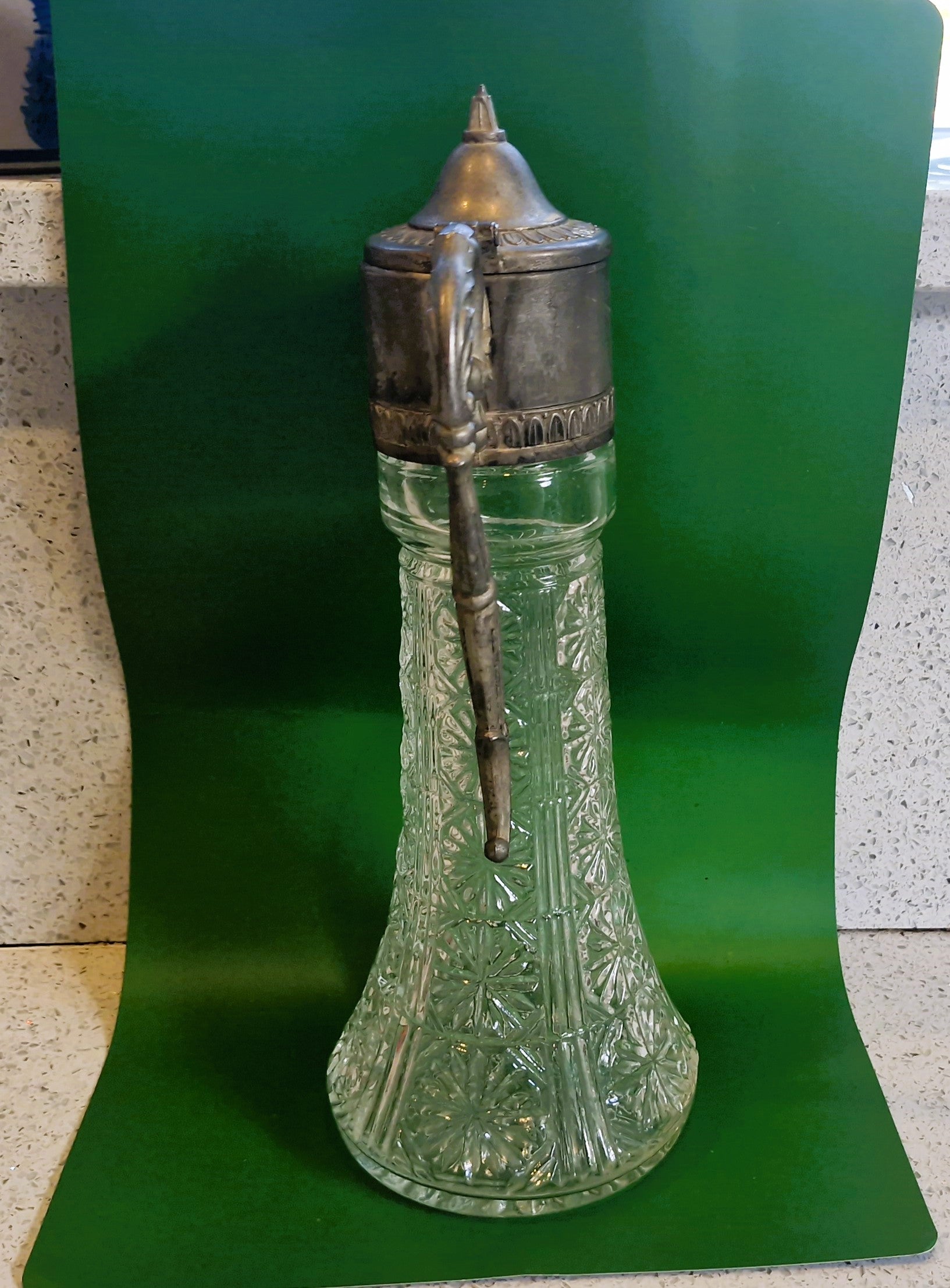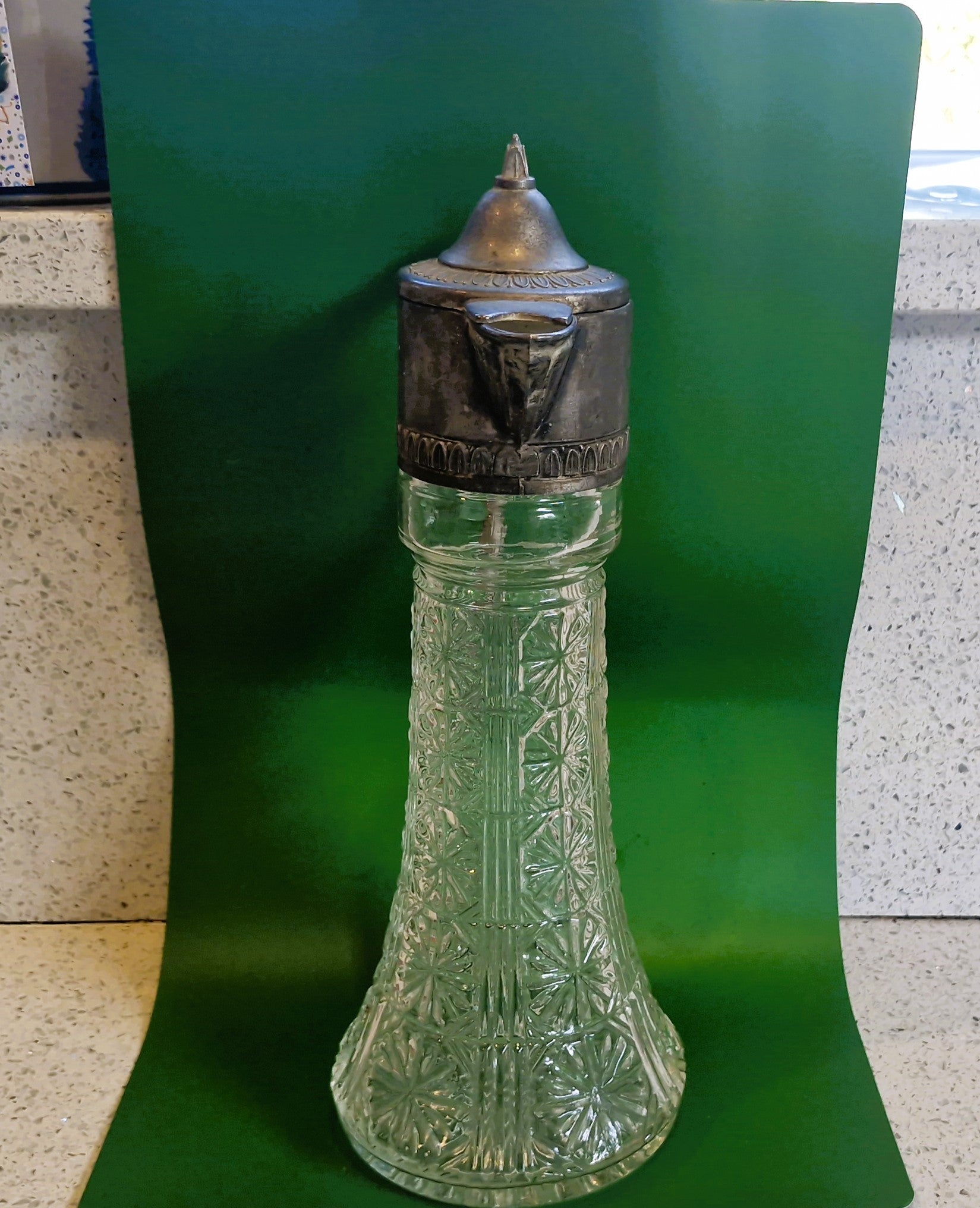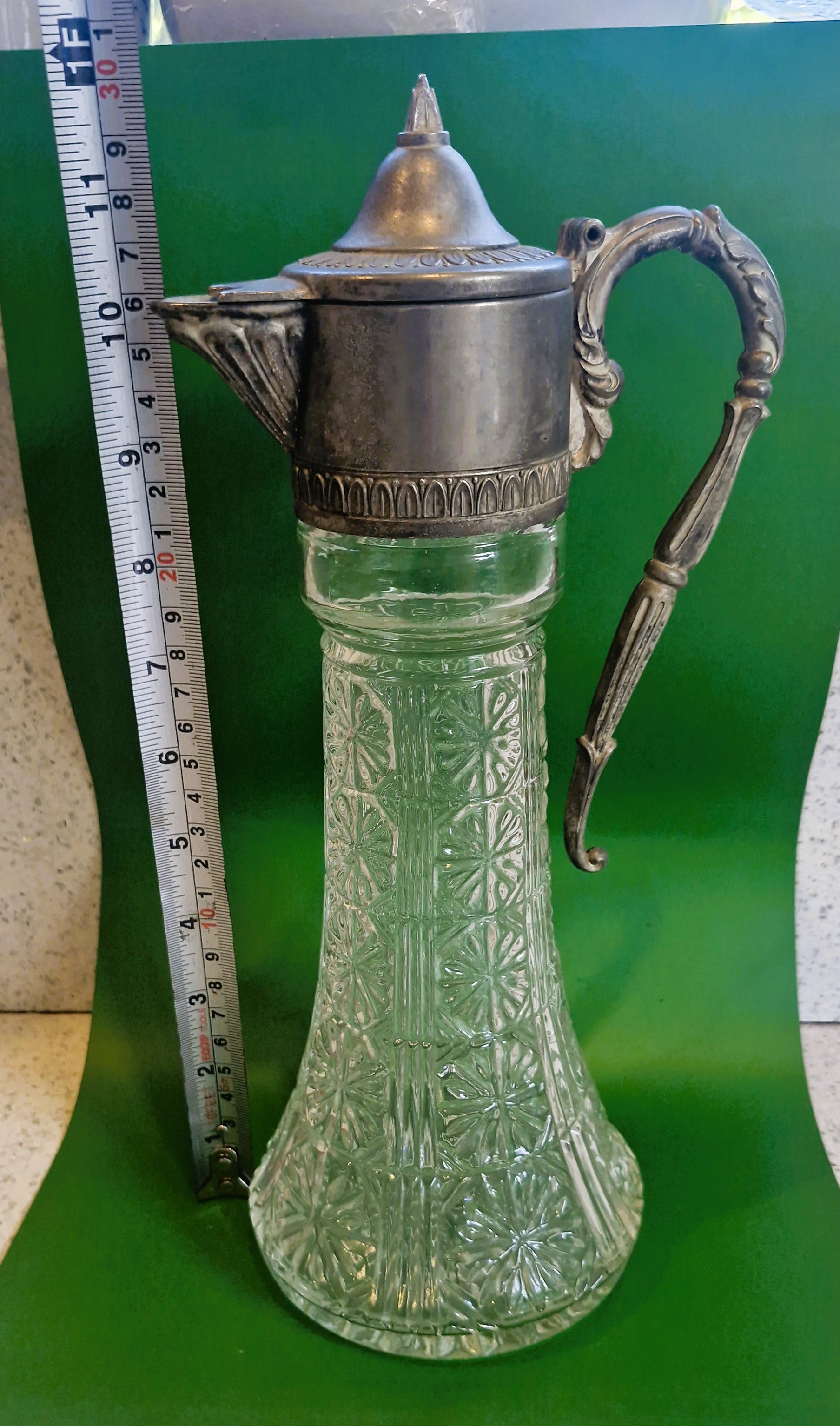 Vintage Cut Glass Decanter: Silver Plated Carafe, Made in England
