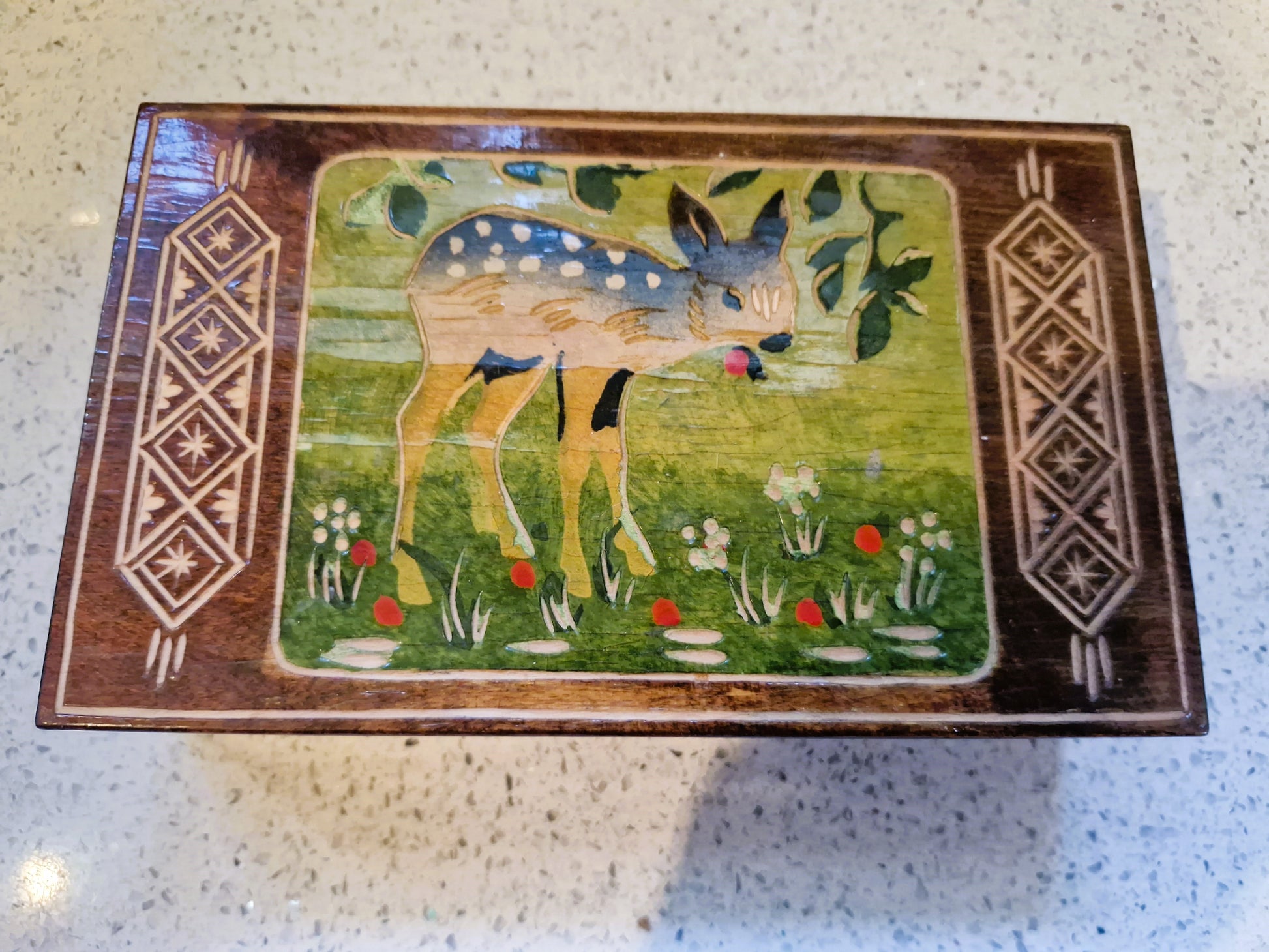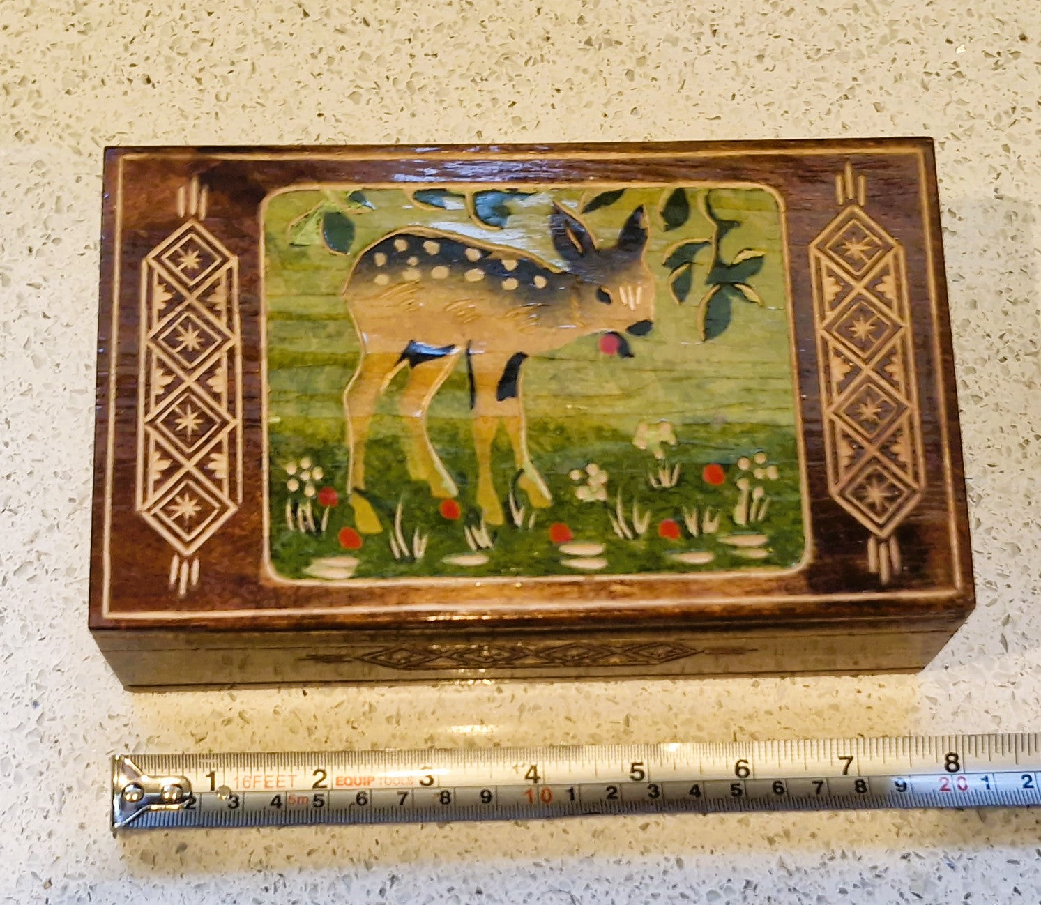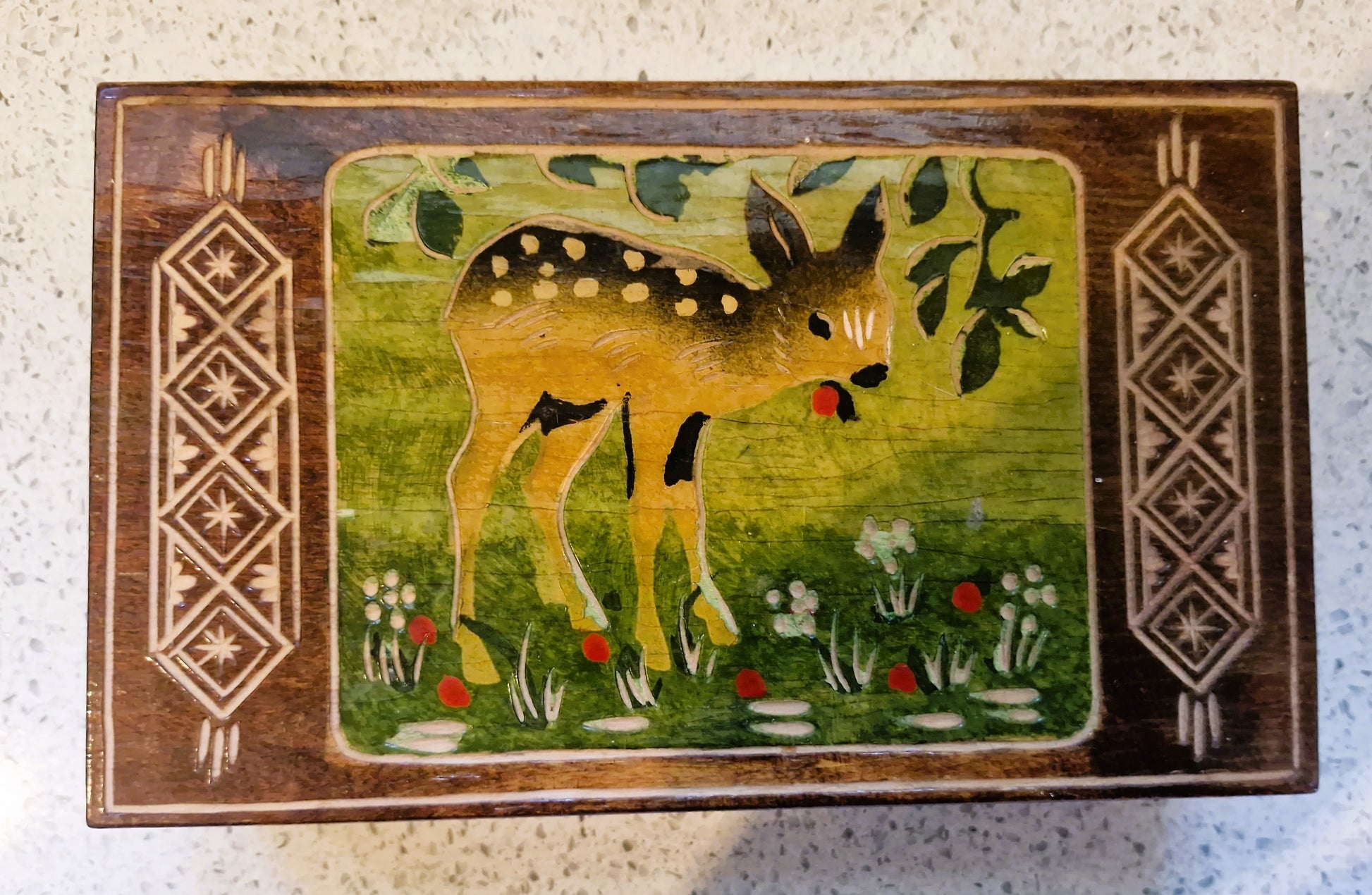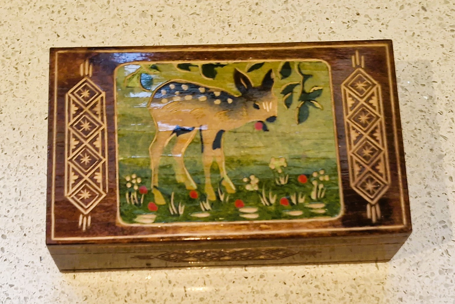 Vintage Wooden Box with Deer on: 196s Bambi, Deer, Kitsch, Quirky